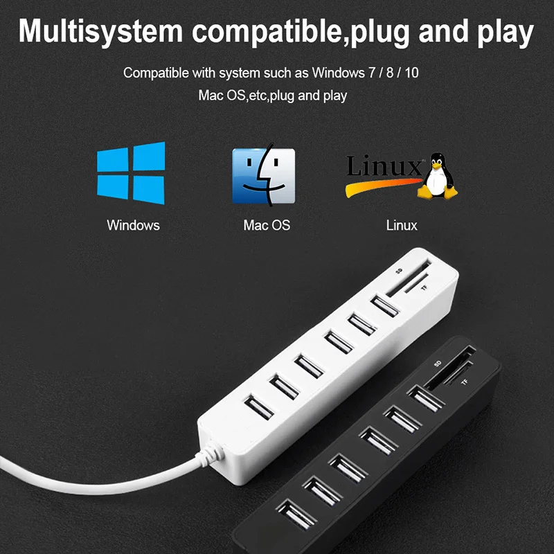 10/90 см USB 2,0 концентратор устройство для чтения карт SD TF 3 Порты 6 Порты USB адаптер-разветвитель 480 Гбит/с USB 2,0 концентратор для компьютера ноутбука Настольный компьютер ПК