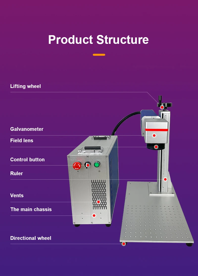 Модель: FLFB20/30/50BRJEМощность лазерного источника: 20 Вт/30 Вт/50 ВтБренд лазерного модуля: JPT/Raycus/MAXСканер: SINO TECHИсточник питания: Meanwell/HengfuF-объектив F-theta