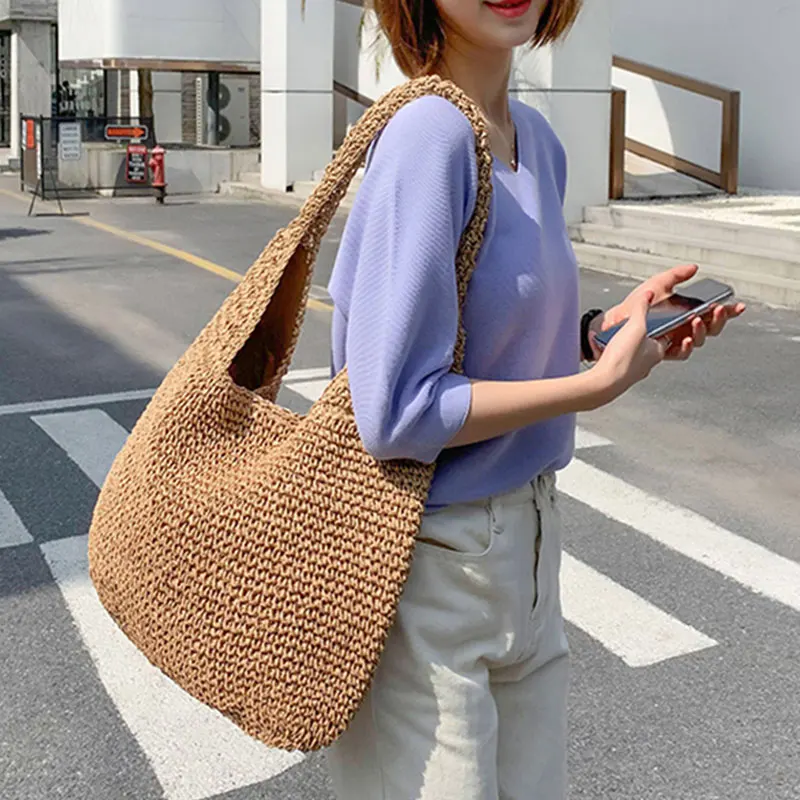 Модные соломенные женские сумки на плечо, плетеные бумажные дамские...