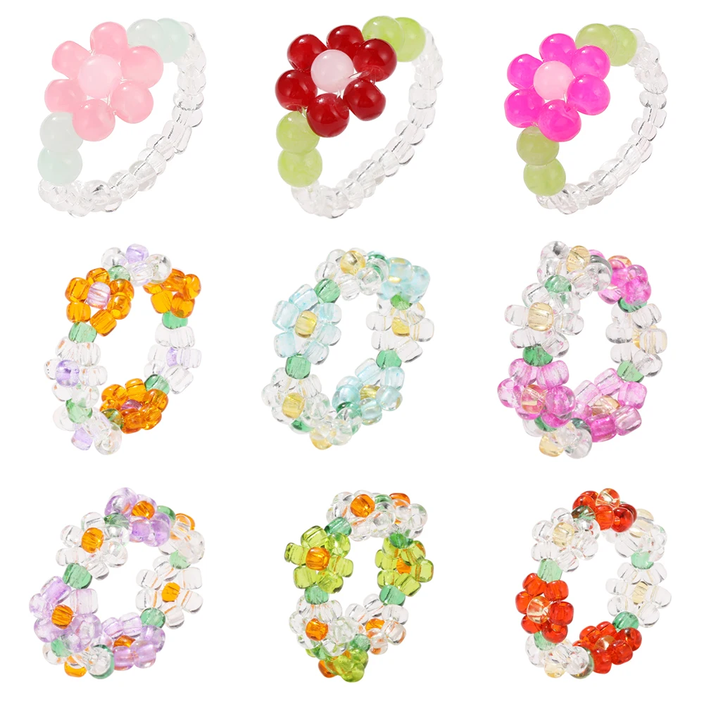 Новые милые прозрачные акриловые кольца ручной работы из бисера разразы Красочные Геометрические Квадратные круглые кольца для женщин Y2k ювелирные изделия для вечеринки