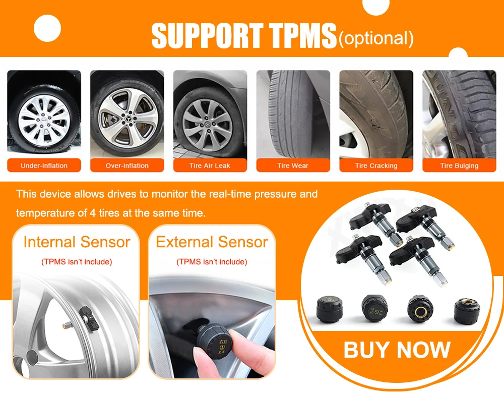Он может отображать температуру и давление в шинах с высокой точностью, чтобы контролировать 4 шины на экране для безопасного вождения
