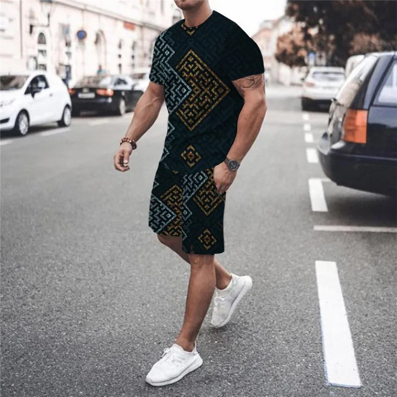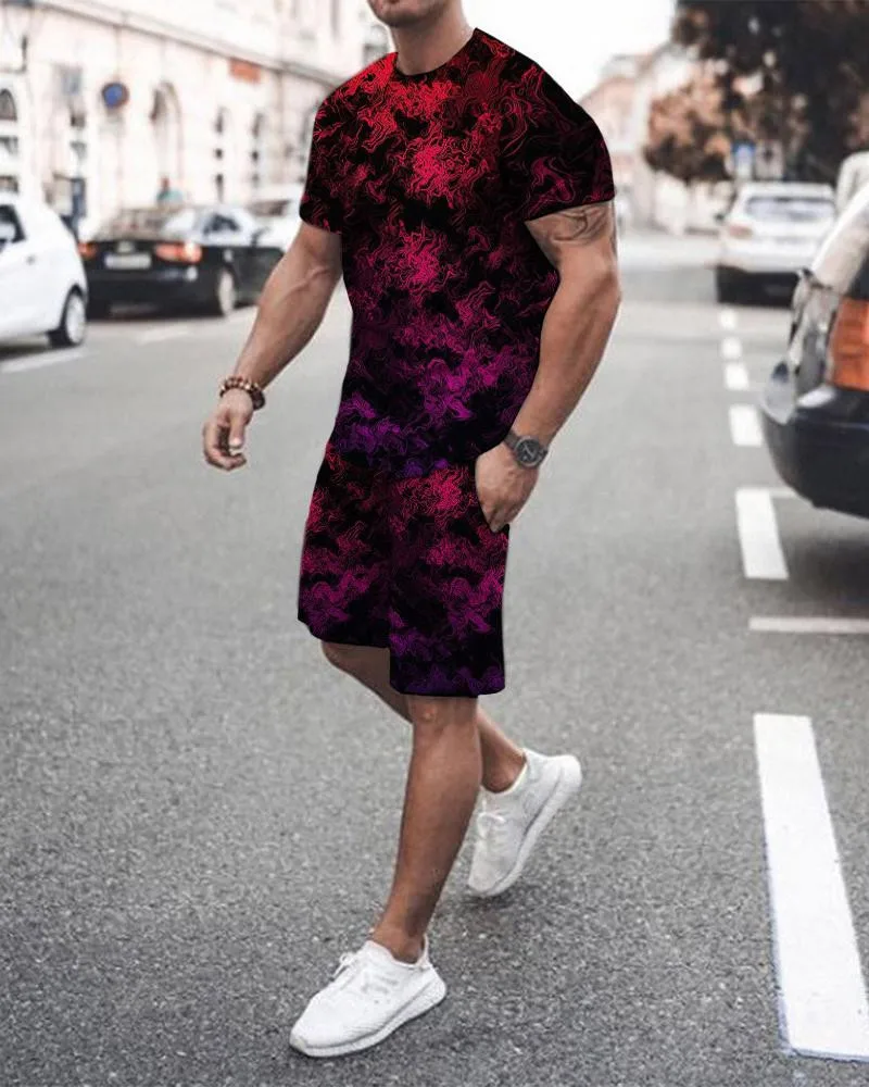 2022 Новая трендовая футболка с 3D принтом и шортами, костюм для му...