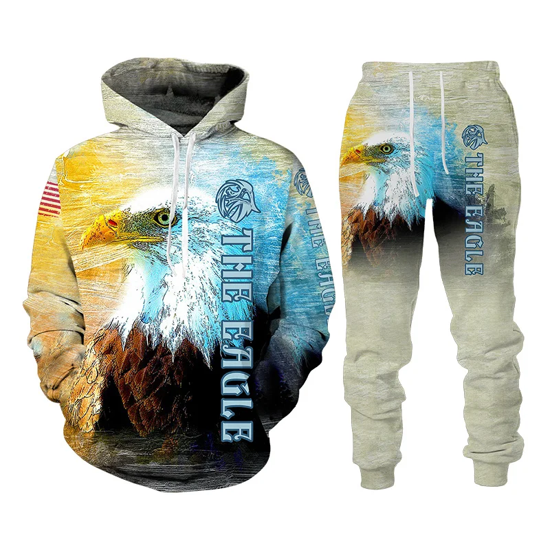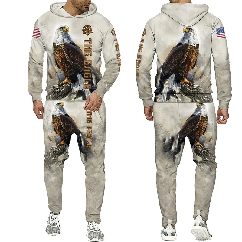 Костюм спортивный унисекс с 3D-принтом орла, толстовка с капюшоном и штаны, повседневная одежда в стиле Харадзюку, спортивный костюм для женщин, Осень-зима