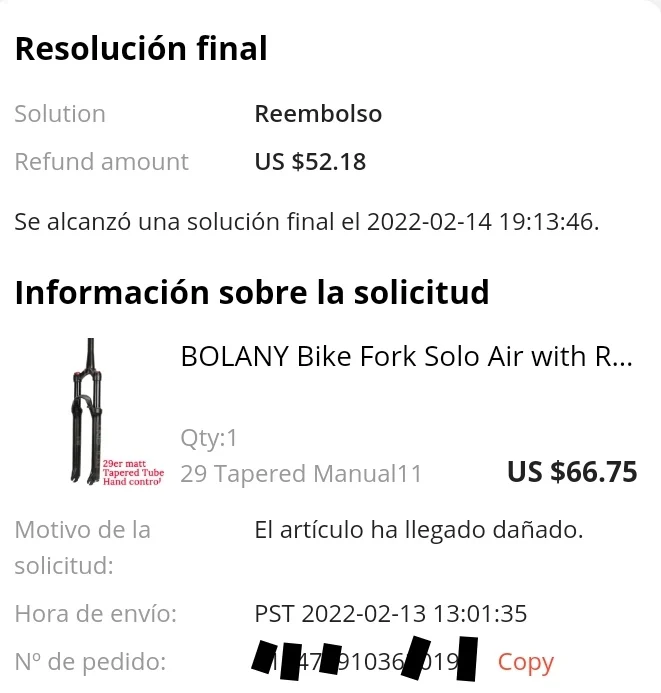 Я призывал себя покупать в этом магазине подвесную вилку болани. Стоимость доставки была высокой AliExpress Premium Shipping. Общение с продавцом было плохим, сообщения на английском языке, которые мне пришлось перевести. После покупки продавец спрашивает меня о стоимости покупки и доставки, что-то странное, что в других магазинах не просят. В конце концов, продавец отправил мне мою покупку через 14 дней после совершения моей покупки, я отправляю fedex с плохой упаковкой, которая была повреждена во время процесса логистики. В дополнение к отправке Подвески без воздуха, я прихожу домой с царапинами. Я поставил спор, и я остаюсь в соответствии с решением.
