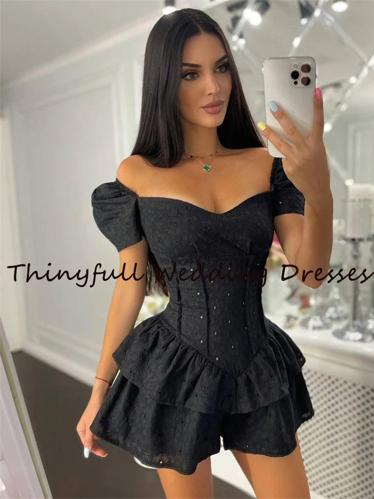 Черные короткие кружевные трапециевидные Свадебные платья без рукавов с открытыми плечами блестящие вечерние платья принцессы платья для вечеринки