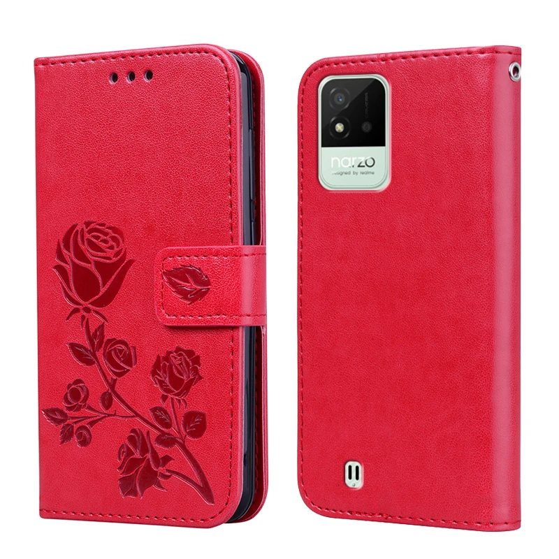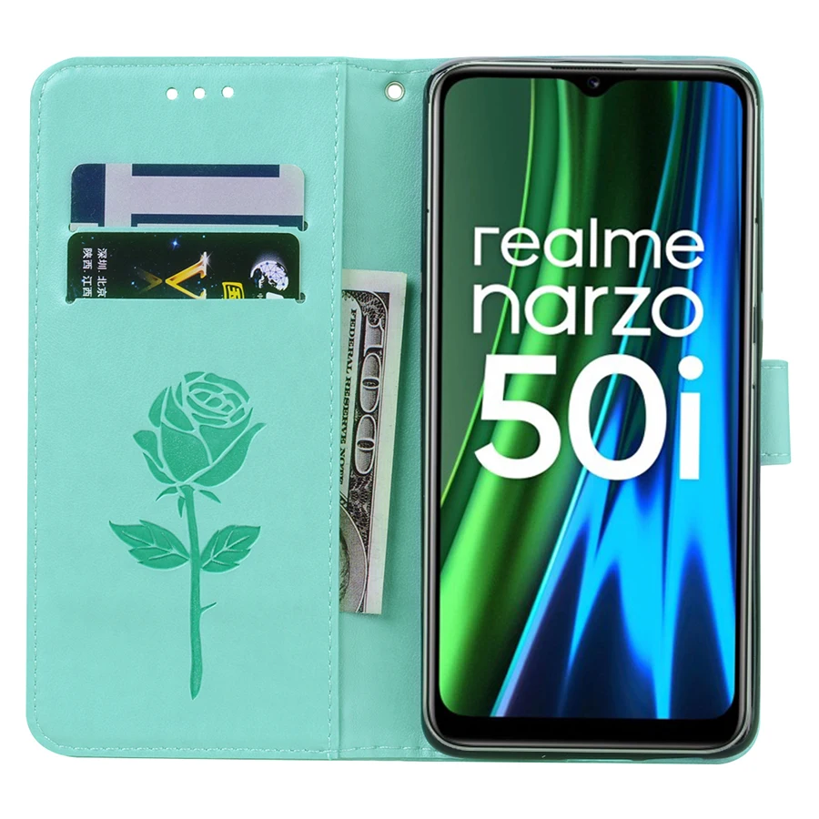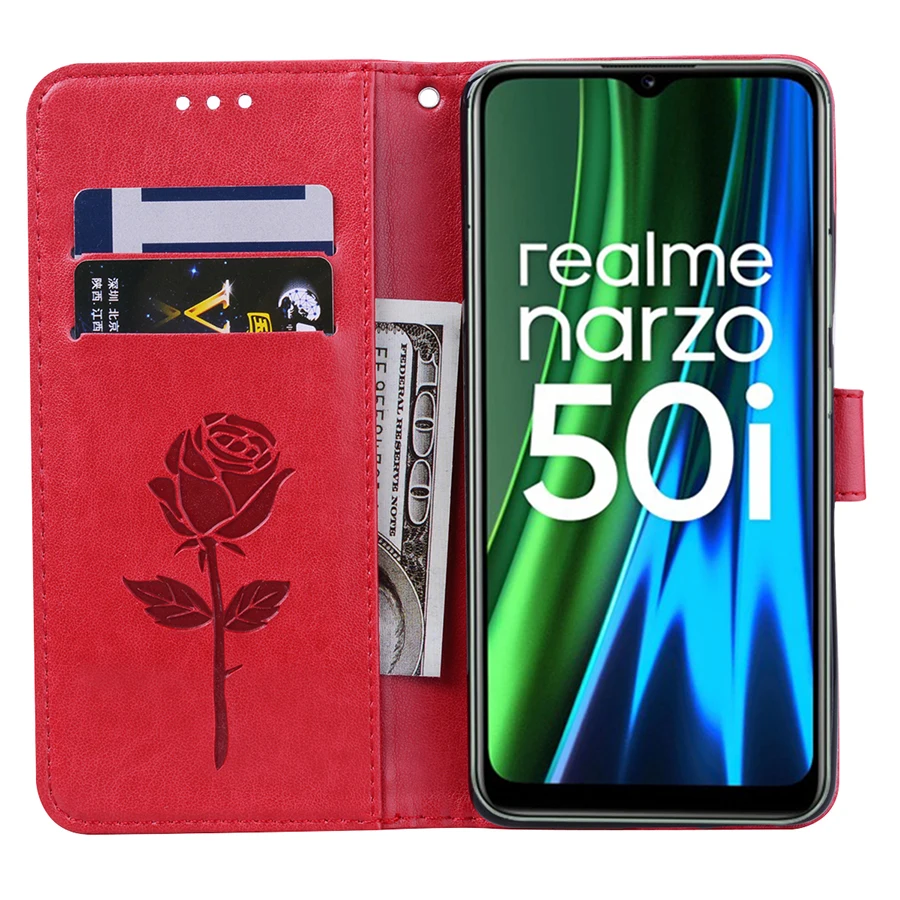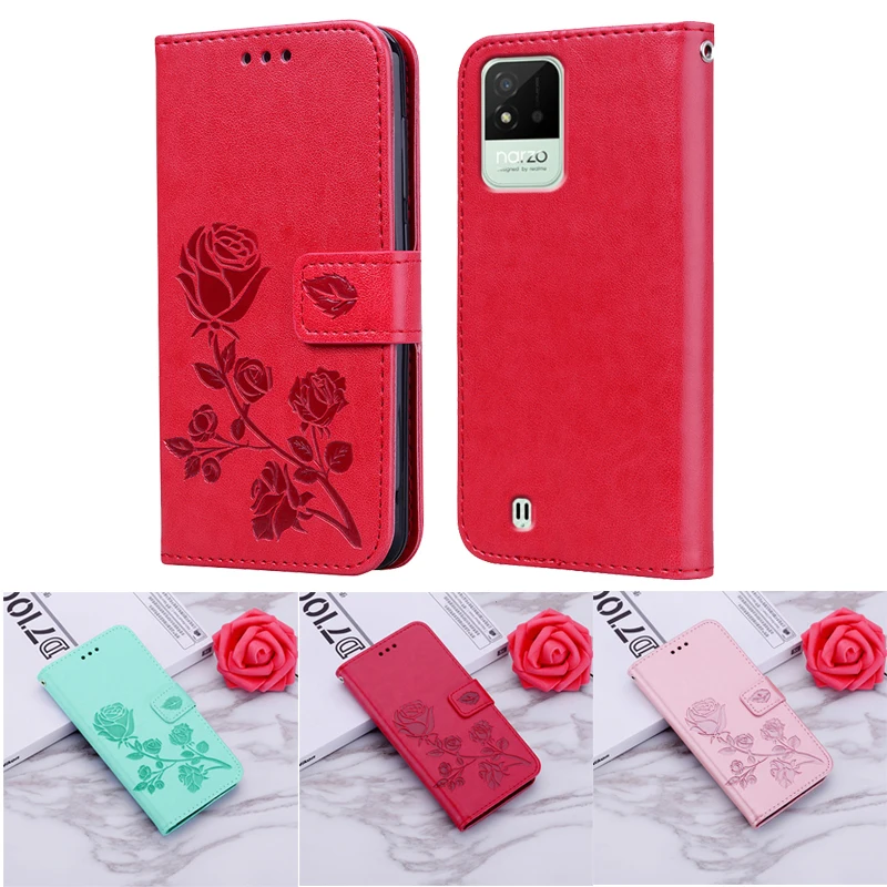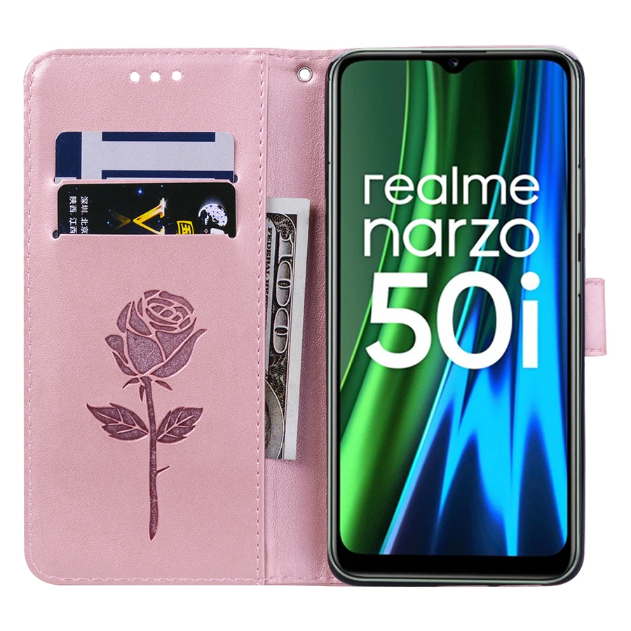 Кожаный чехол для Realme Naro 50A 10 20 30 A Pro милый розовый цветок, чехол для телефона, футляр Realme Narzo 50i RMX3231 Mujer Etui