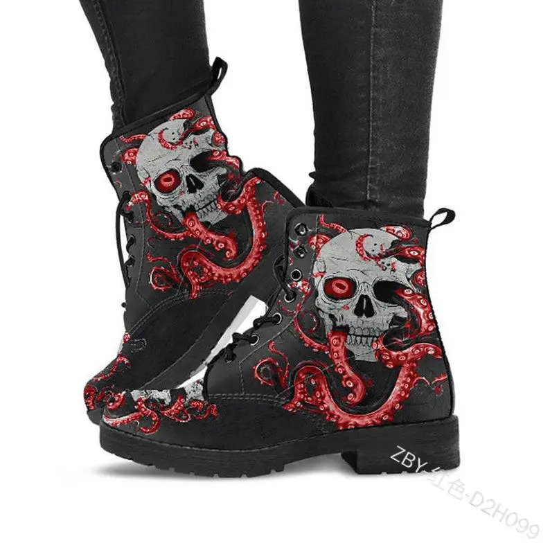 Ботинки Martin Женская обувь в британском стиле цветные ботинки с принтом черепа женские ботинки с высоким берцем и бабочкой 2021 из искусственной кожи