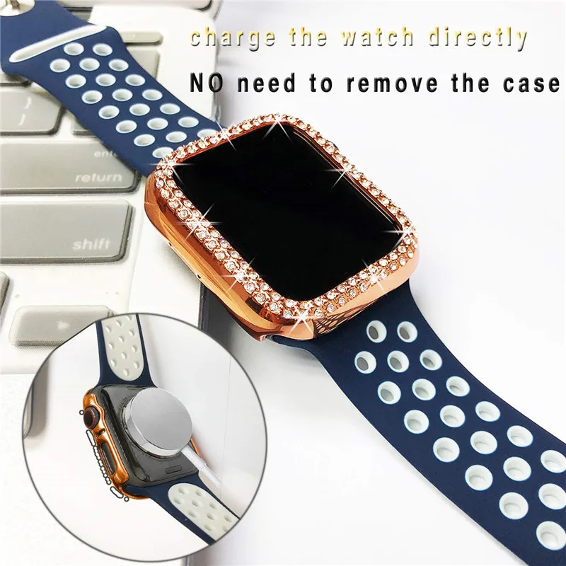 Хорошая Совместимость: для Apple Watch 38 мм 42 мм 40 мм 44 мм серии 5 4 3 2 1Уникальный дизайн: Искрящиеся Стразы надеты на весь чехол для циферблата часов, чехол изготовлен из поликарбоната, и клей делает Стразы прочными.Простота в использовании: благодаря точному процессу этот Чехол отлично подходит для Apple Watch. Вы можете получить точный доступ к экрану, кнопке питания, цифровой короне и динамику.Полная защита: Чехол закрывает все стороны и плотно удерживает часы, защищает ваши часы от царапин, ударов, пыли, обеспечивает внешнюю защитуГарантия качества: Каждый чехол для часов квалифицирован перед продажей (часы не входят в посылка), стоит купить.Посылка включает:1x чехол для apple watch