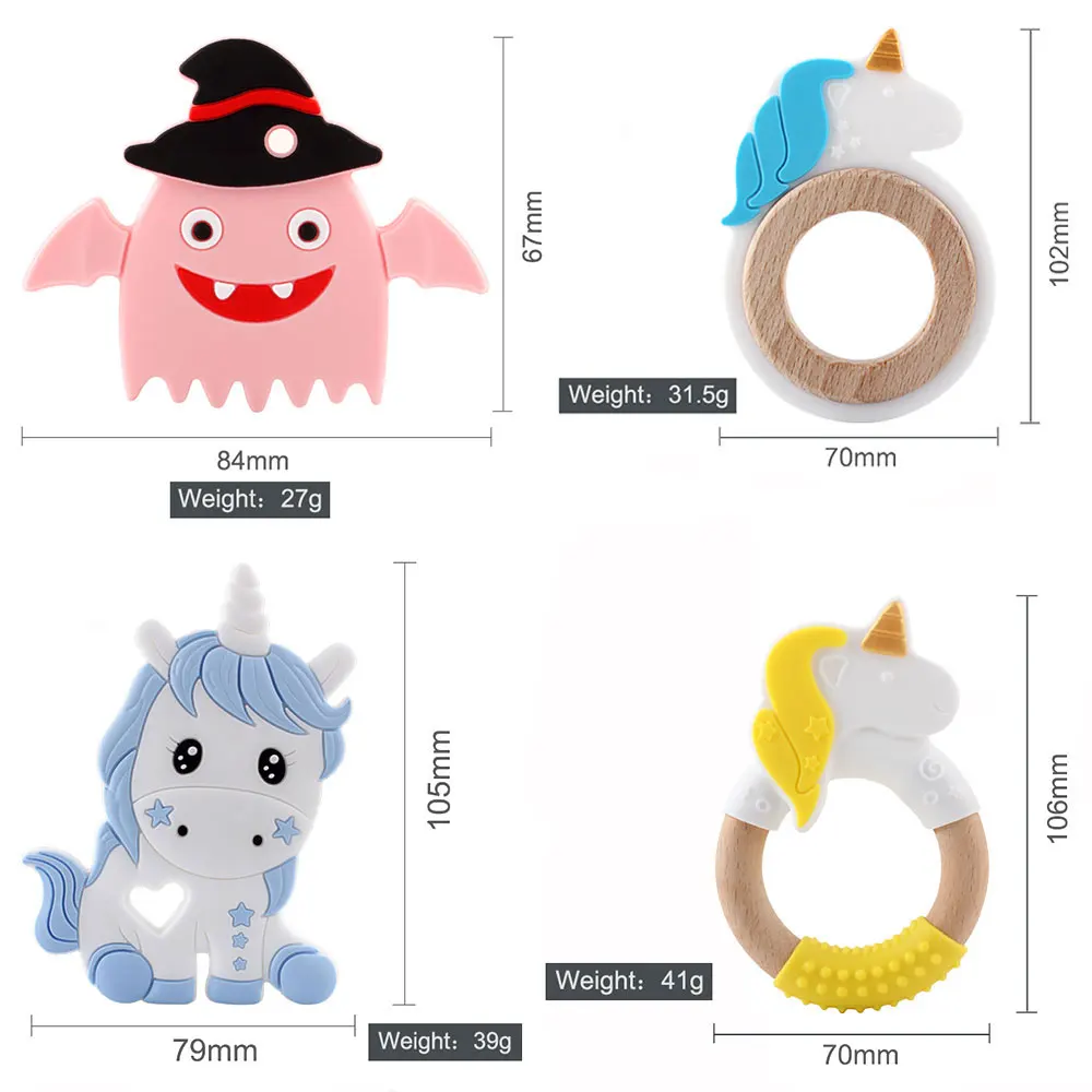 1 шт., прорезыватель для зубов с мультяшными животными, силиконовый, пищевой, с единорогом, Радужный, для прорезывания зубов, продукт, сделай сам, пустышка, цепь, BPA бесплатно, грызуны