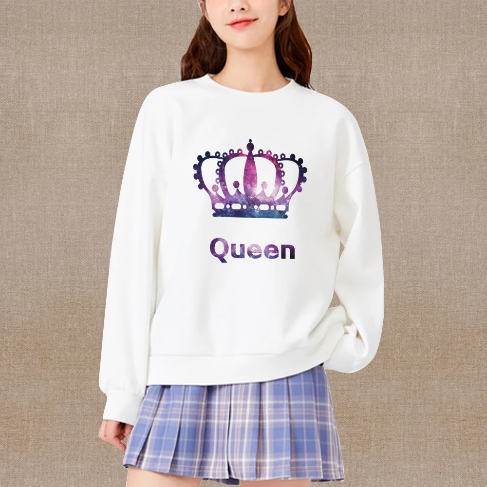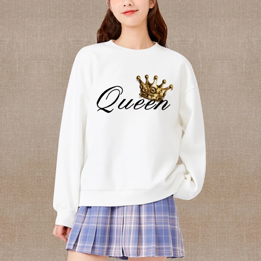 Женская одежда, свитшот с длинным рукавом, пуловер для отдыха, серия с принтом королевской короны, с круглым вырезом, осенняя теплая мягкая толстовка