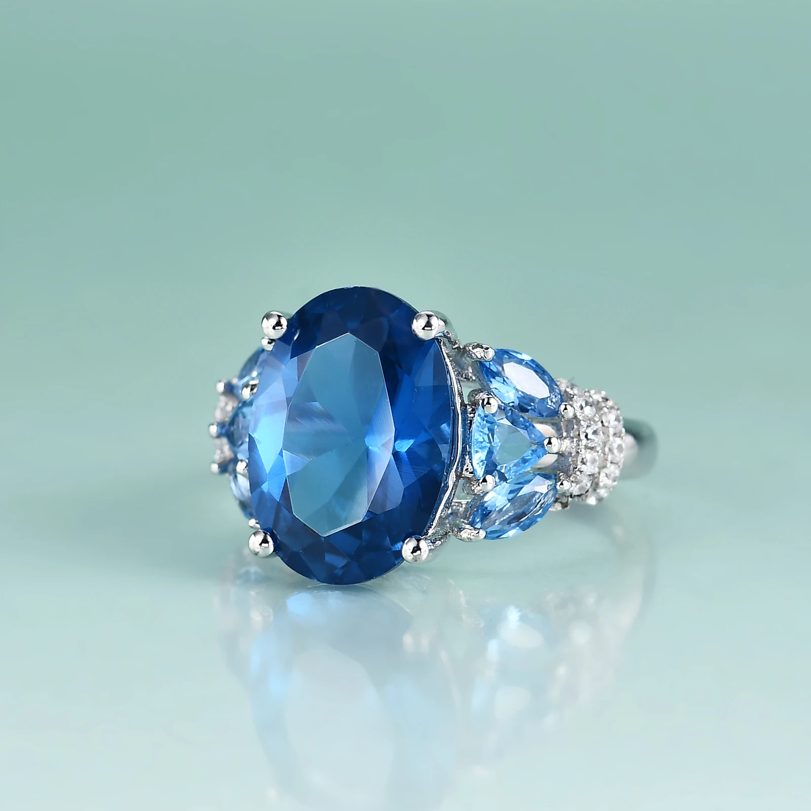 Кольца женские из серебра с синей шпинелем, 4 карата