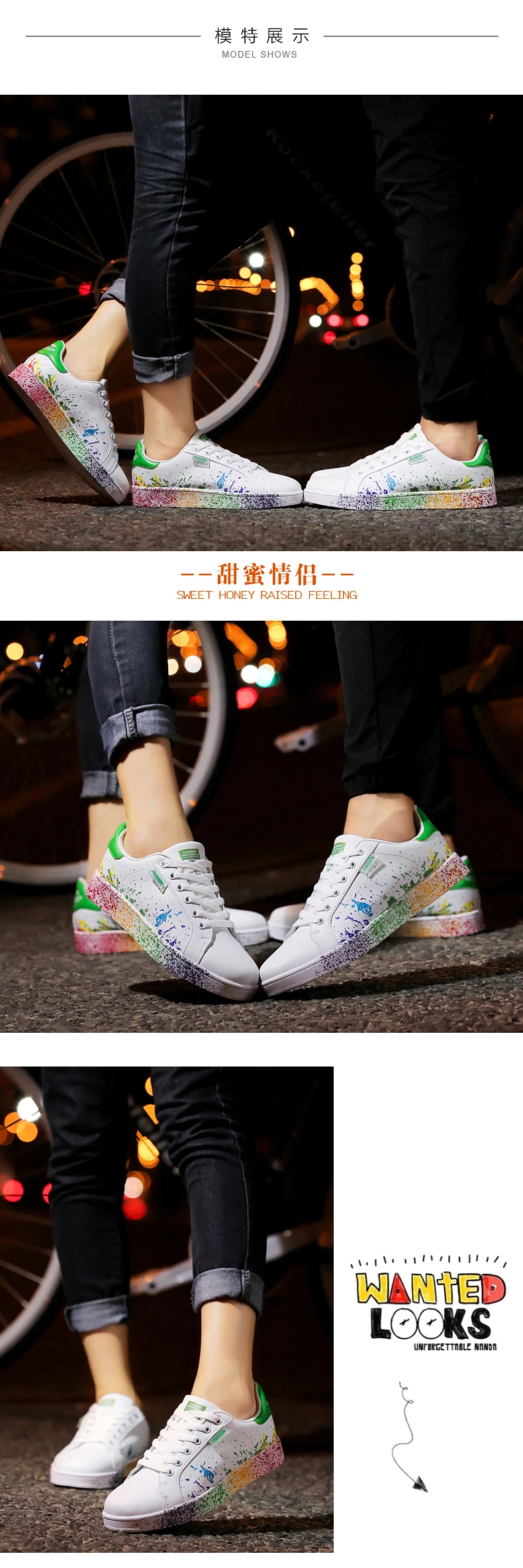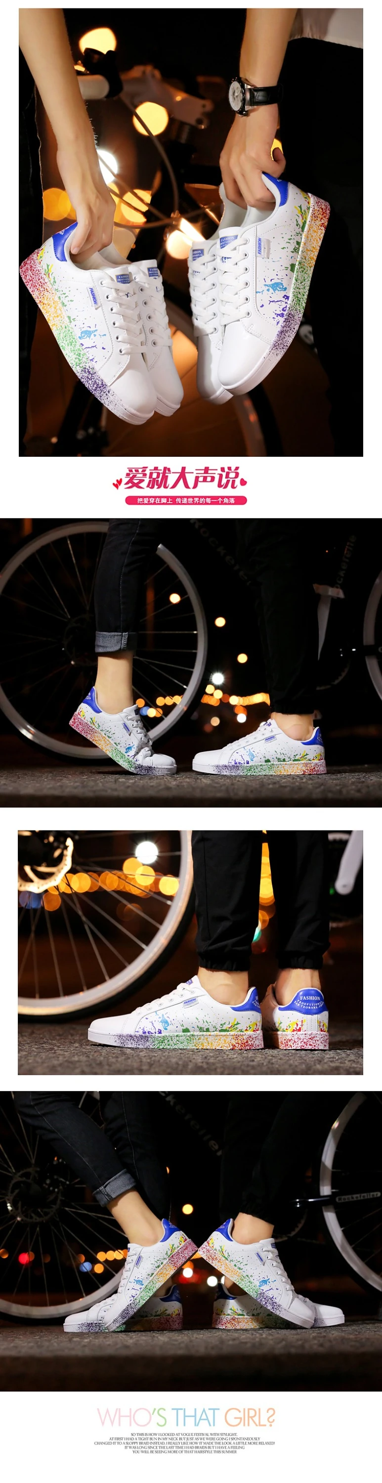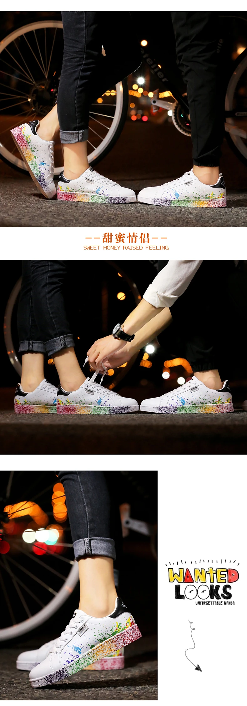 Модные мужские повседневные туфли граффити белые кроссовки для скейтборда мужские кожаные туфли на плоской подошве мягкие мужские спортивные туфли для пар 55-46