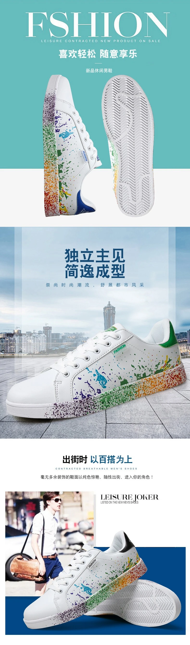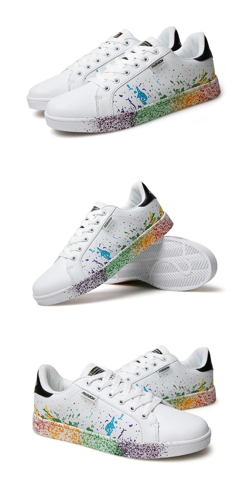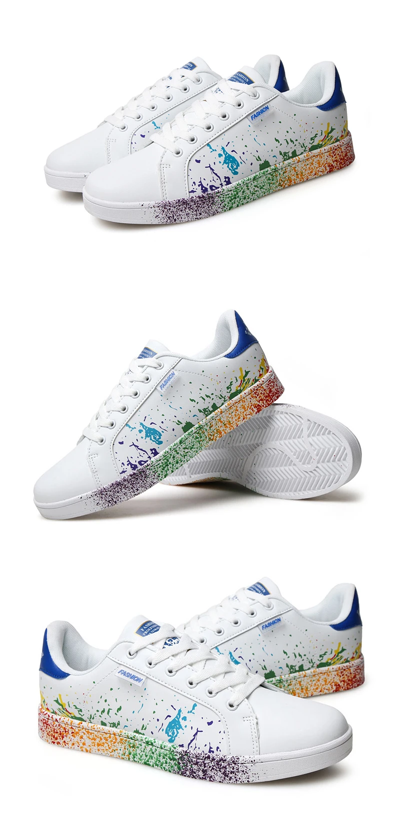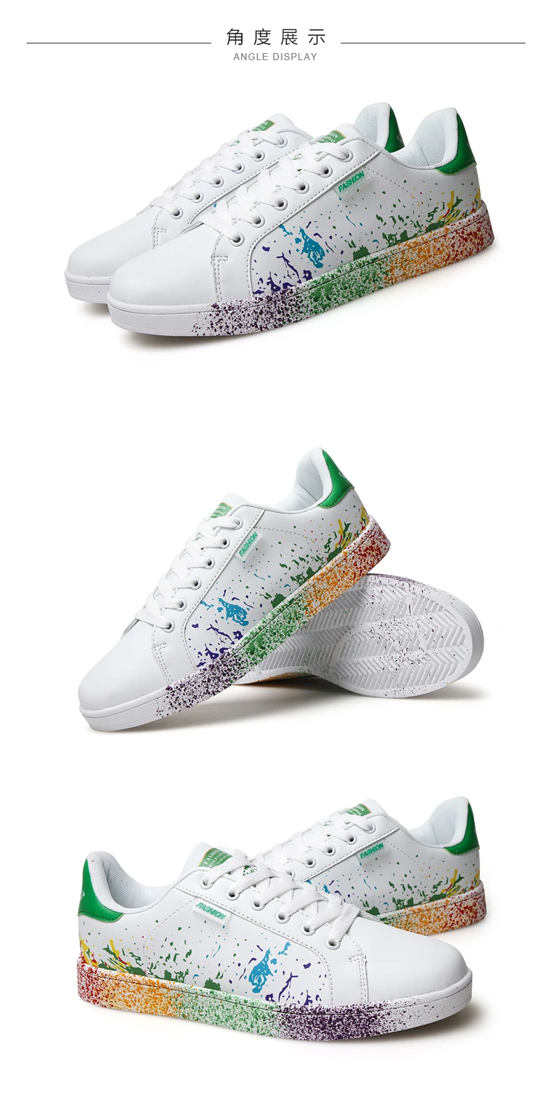 Модные мужские повседневные туфли граффити белые кроссовки для скейтборда мужские кожаные туфли на плоской подошве мягкие мужские спортивные туфли для пар 55-46