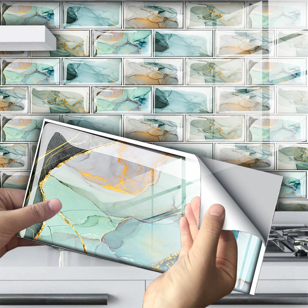 3D наклейки на стену в виде керамической плитки, украшение для ванной комнаты, 3D наклейки на стену, кухонные водонепроницаемые и влагостойкие обои, самоклеящиеся