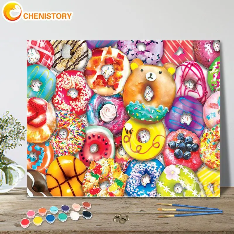 Картина по номерам CHENISTORY, еда, картина для детей и взрослых по номеру, Пончик, цветной торт, рисование на холсте