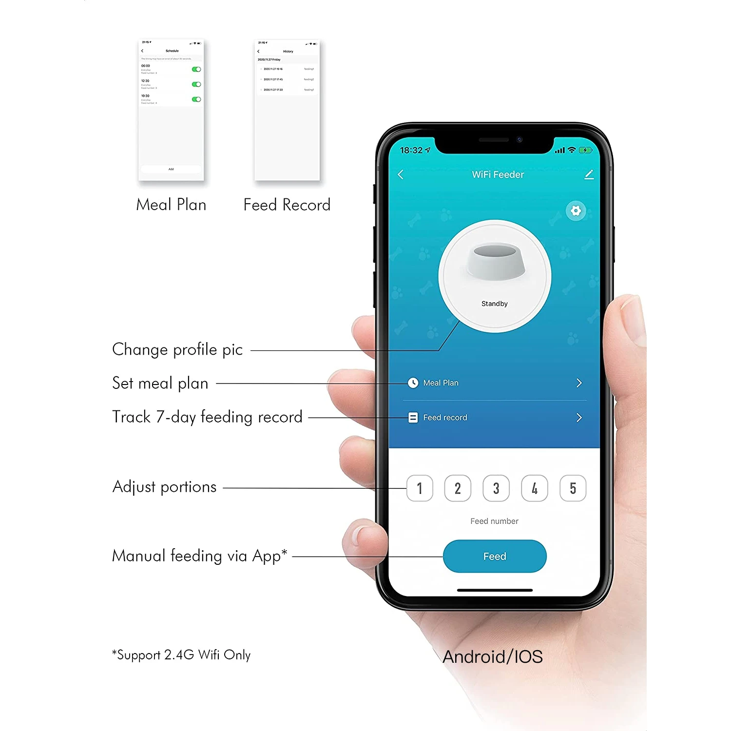 Легкая подача приложения для телефона: отличный пищевой дозатор с пультом управления, подача домашних животных из любого места в любое время с помощью телефона (Android и iOS) и отслеживание записей кормления для управления. Удаленно устанавливайте время и количество пищи, чтобы автоматически кормить вашего питомца и можно использовать для нескольких учетных записей, легко настроить. Поддержка 2,4 ГГц сети только в том случае,Точный контроль порций и здоровая жизнь домашних животных: Емкость 4L отлично подходит для собак и кошек, программирует до 10 блюд, чтобы питаться по расписанию вашего питомца, 1-12 порций за еду.10s настраиваемый вызов для кормления: Записывайте свои голосовые сообщения и Воспроизводите их, чтобы ваши домашние животные привыкли к питателю лучше во время подачи пищи. Автоматически транслируется, чтобы напомнить вашим питомцам, что пришло время для еды, и они больше не будут чувствовать себя одинокими, когда услышат вашу Запись голосаСъемный и глубокий поднос из нержавеющей стали: поднос из пищевой нержавеющей стали обеспечивает здоровое и гигиеническое питание и избавляет ваших питомцев от прыщей на подбородке. Съемный дизайн удобно разбирать и легко чистить.Двойной Режим питания: Питание питателя через прилагаемый адаптер питания или 3 батареи D (не входят в комплект). Резервное копирование батареи гарантирует, что ваши питомцы будут питаться даже при отключении питания. Рекомендуется использовать как аккумулятор, так и адаптер в чехол с любым отключением питания