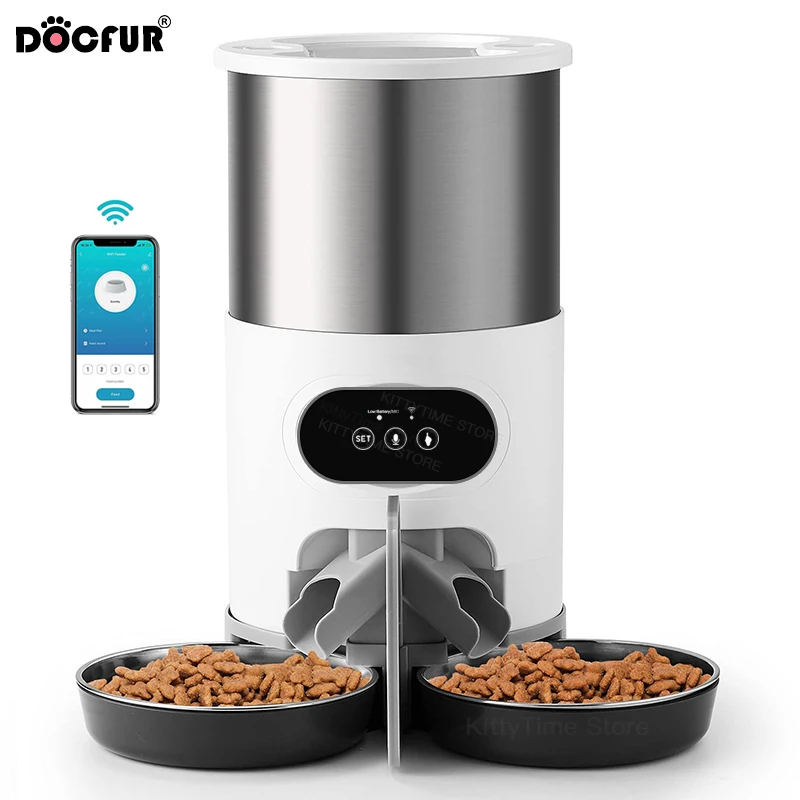 Автоматическая кормушка для кошки дозатор сухой еды для домашних животных, двойные чаши для двух кошек, щенков, собак с WiFi, Таймер подачи, диктофон WSQ01