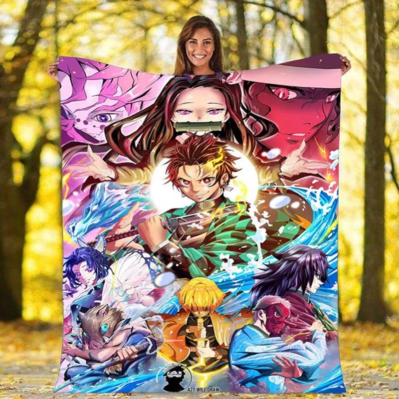Одеяло из фланели в стиле аниме, супер мягкое легкое одеяло для спа...
