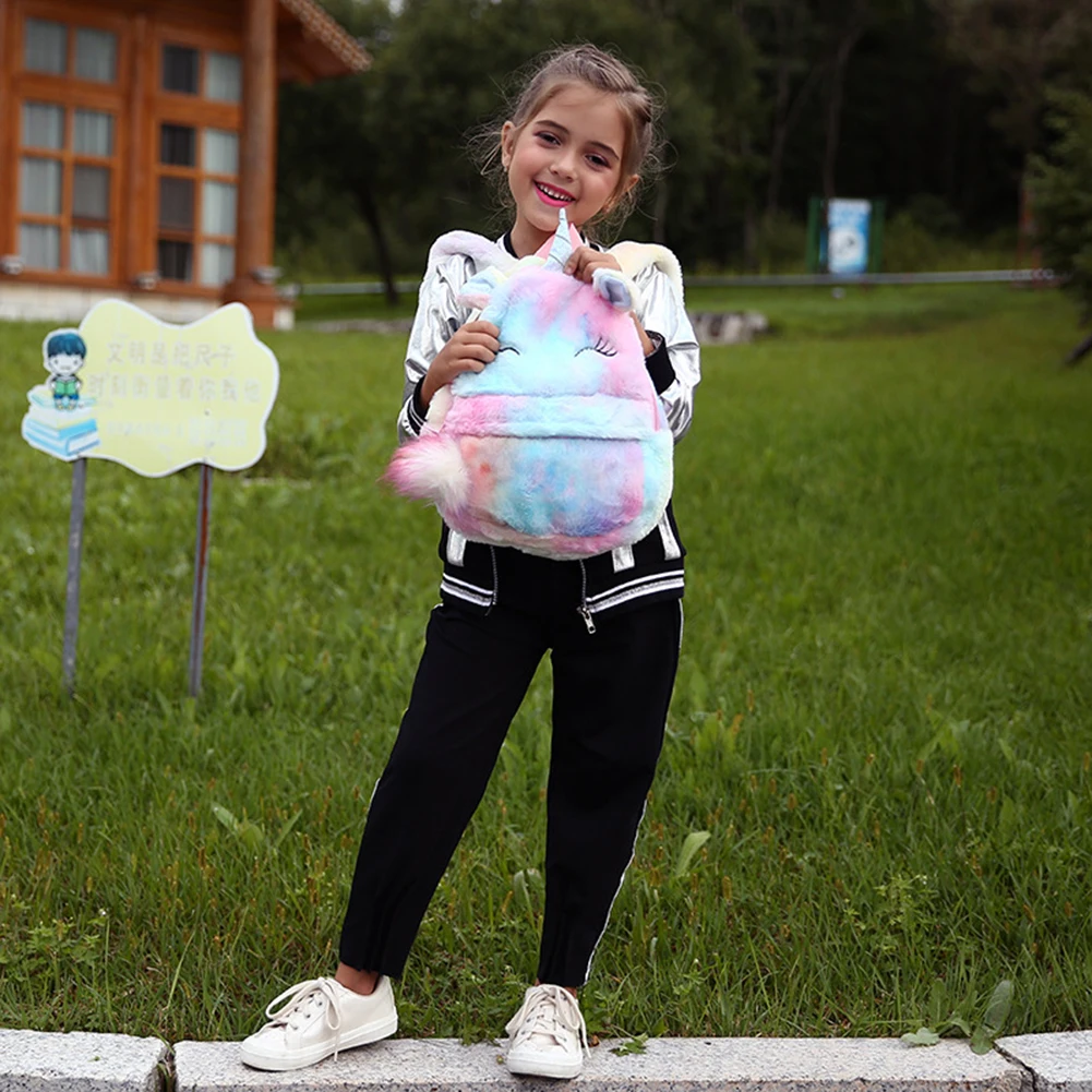 Милый мультяшный рюкзак для девочек, плюшевые рюкзаки с единорогом,...