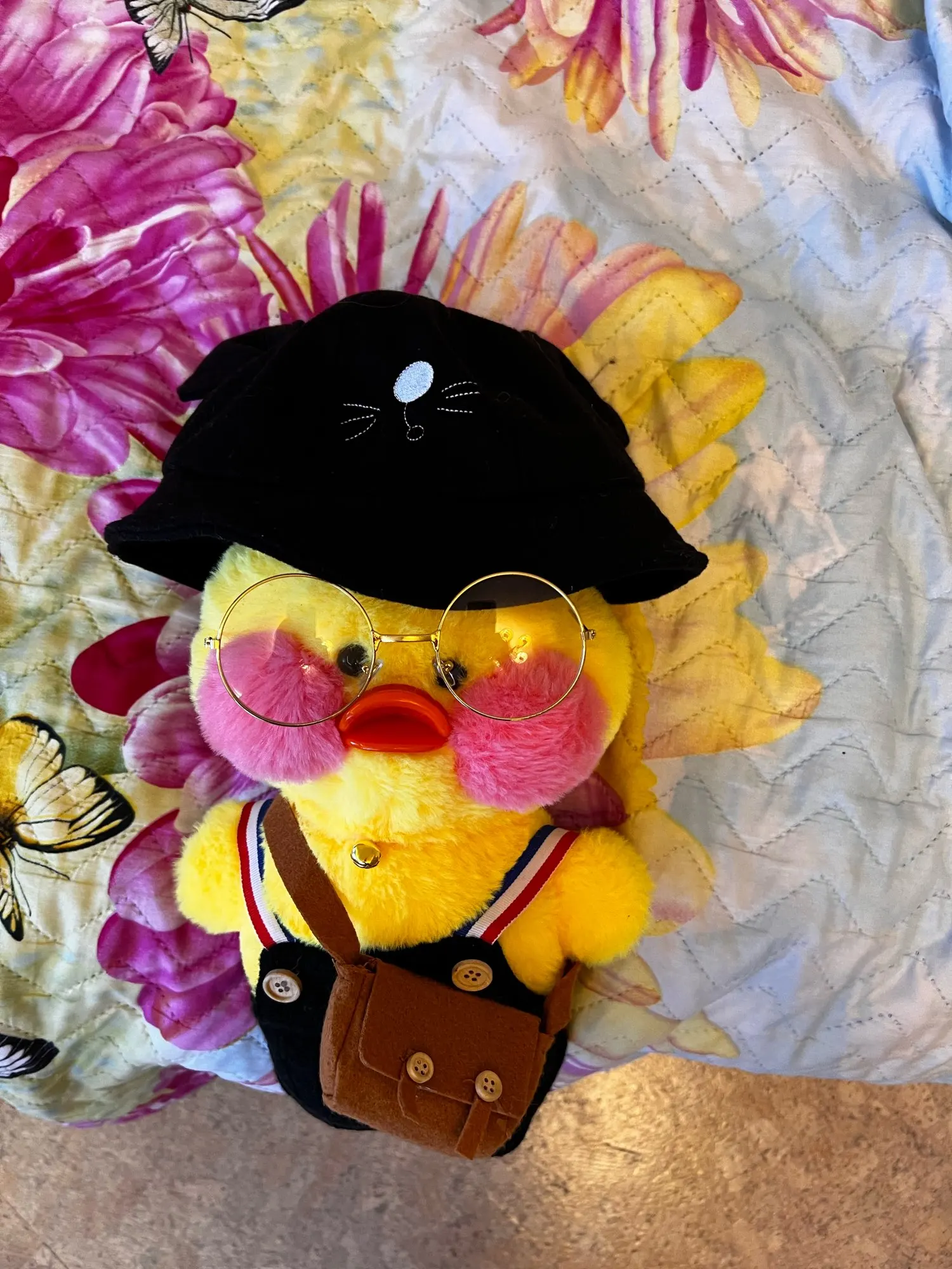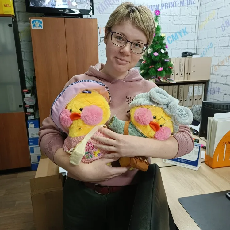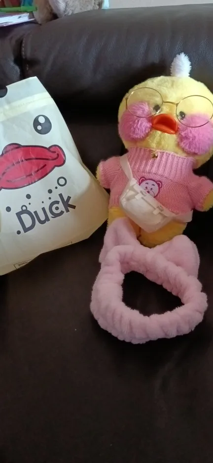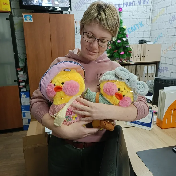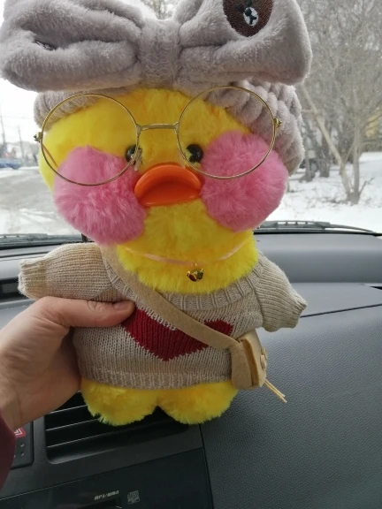 Ребёнок очень рад!!! Утка хорошо пошита. Приехала в красивом пакете. Только очки спадают и Шляпа не очень хорошо держиться, клюв крутится. Вместе с уткой в наборе есть одежда очки и сумка. А так всё хорошо. Спасибо большое продавцу за такую игрушку!