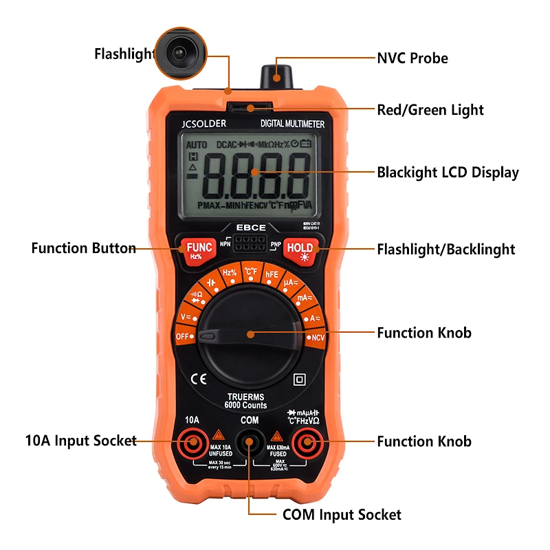 4. Диапазон переменного тока: 600uA/6000uA/60mA/600mA/6A/10A