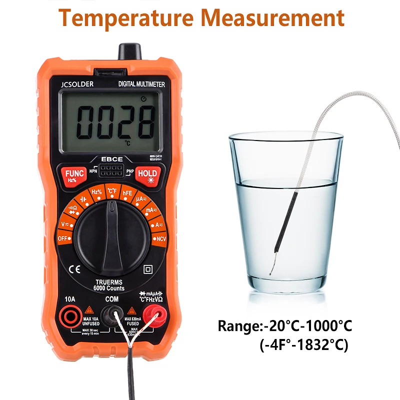 Может использоваться для измерения значения RMS напряжения постоянного тока, синусоидальной волны переменного напряжения, постоянного тока и синусоидальной волны переменного тока. Сопротивление, емкость, частота, подводка для глаз, диод, тест conti-nuity.