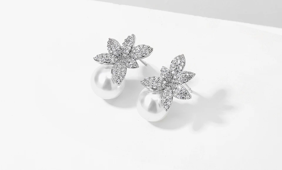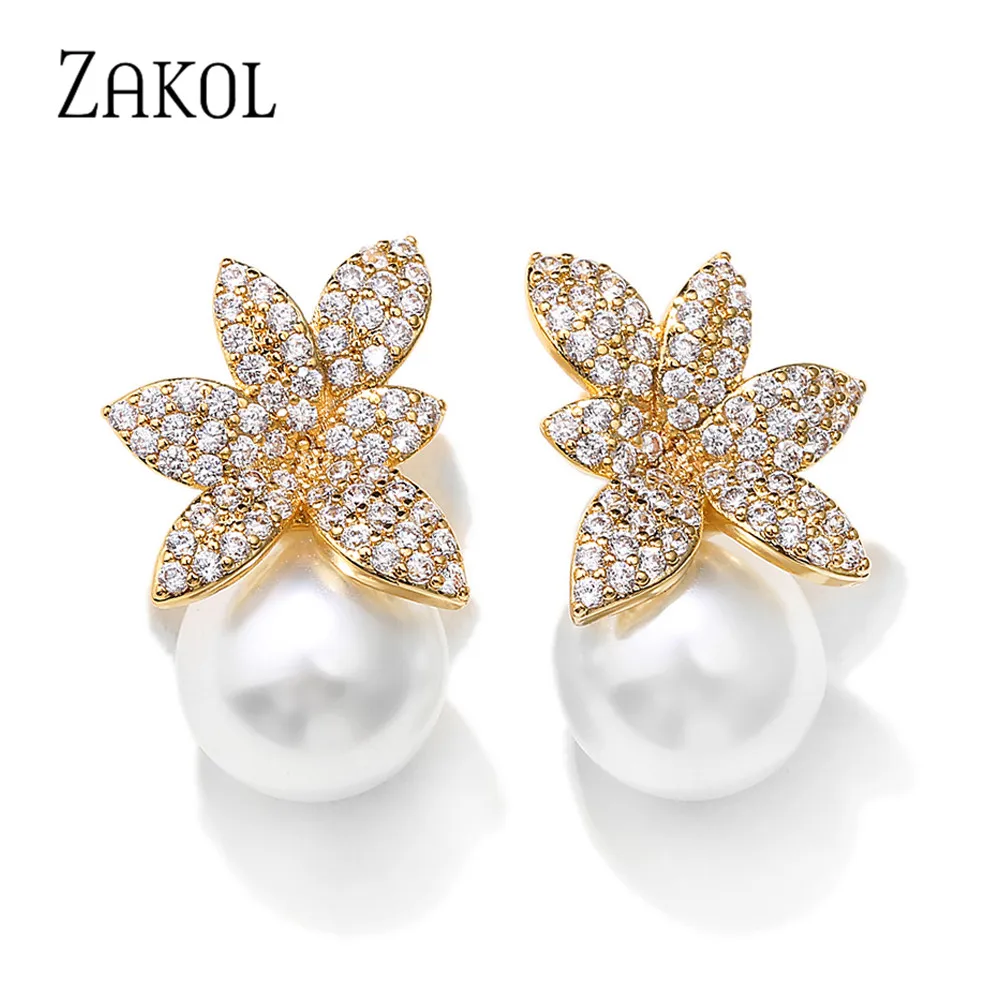 ZAKOL корейские модные женские серьги-гвоздики с искусственным жемчугом в виде листьев для женщин и девочек, очаровательные свадебные ювелирные изделия с микро цирконием