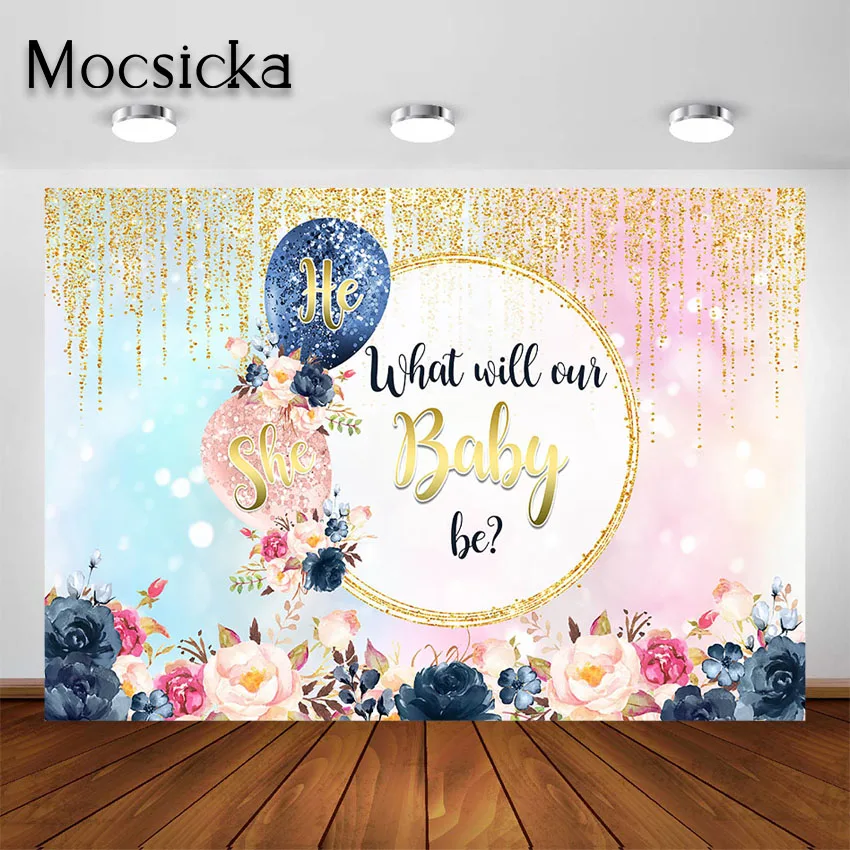 Mocsicka темно-синий Румяна Розовый шар пол раскрыть фон мальчик или девочка он или она пол сюрприз вечеринка Декор Фон