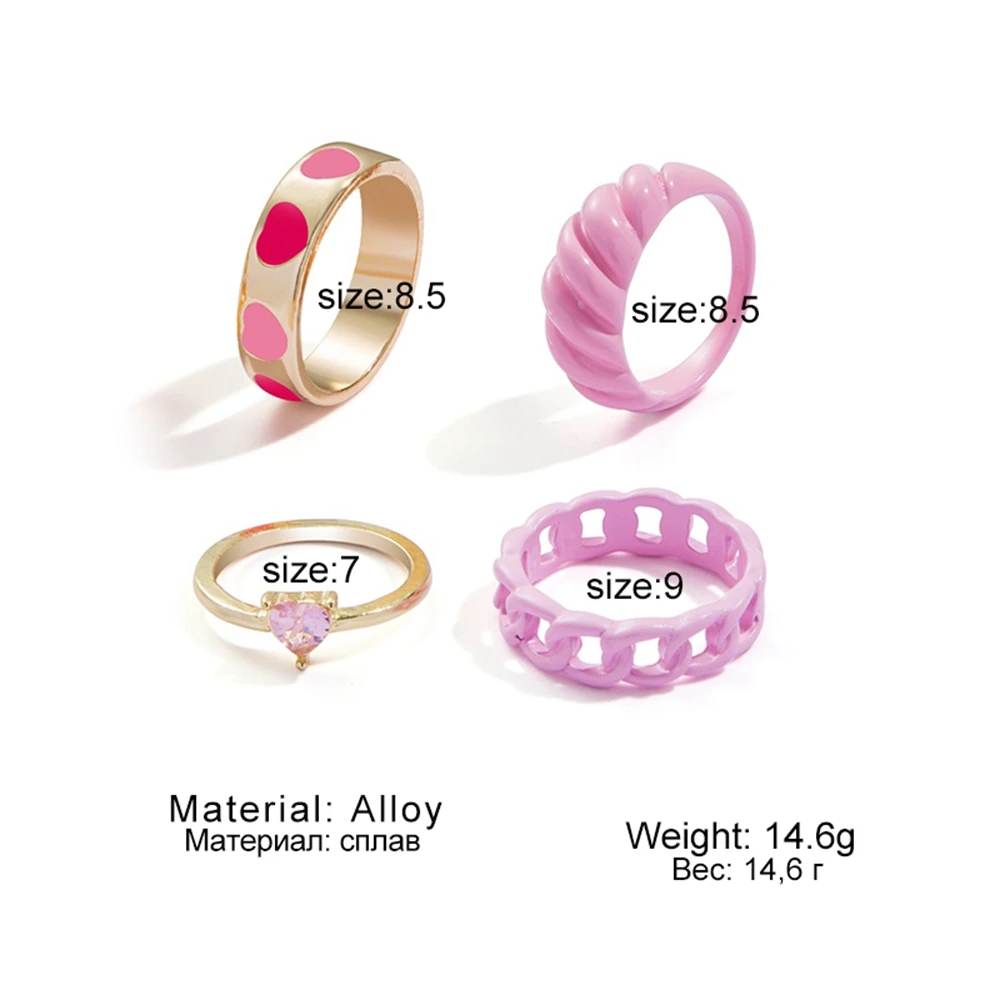 KISSWIFE Набор колец с розовыми кристаллами Y2K в форме сердца для женщин и девочек в стиле Ins с геометрическим рисунком, модные украшения, модные подарки