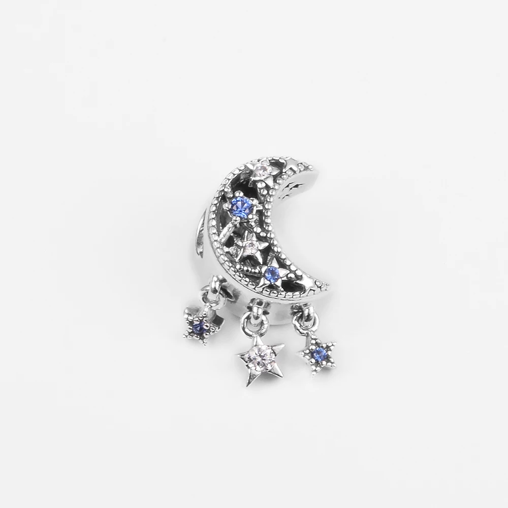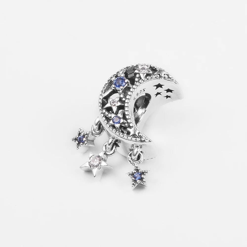Женские бусины сделай сам для изготовления ювелирных изделий, Шарм в виде звезды и полумесяца, серебро 925 пробы, подходят для европейских браслетов, бусины-цепочки из бисера