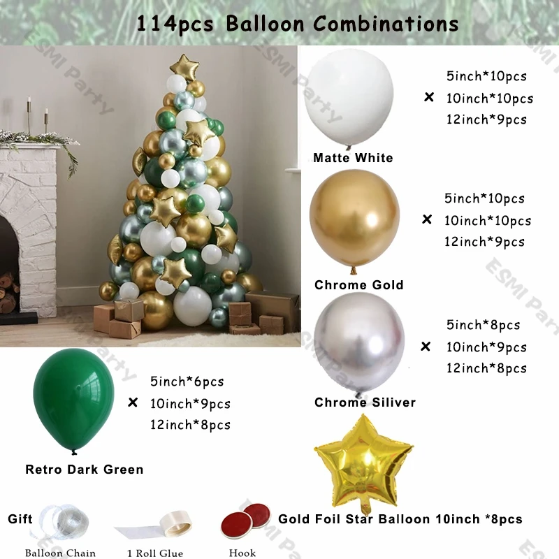 114 шт. рождественские украшения 2022 темно-зеленая Золотая гирлянда Цепочка Рождественский Декор хром силивер белый шар Набор сделай сам Рождественская елка