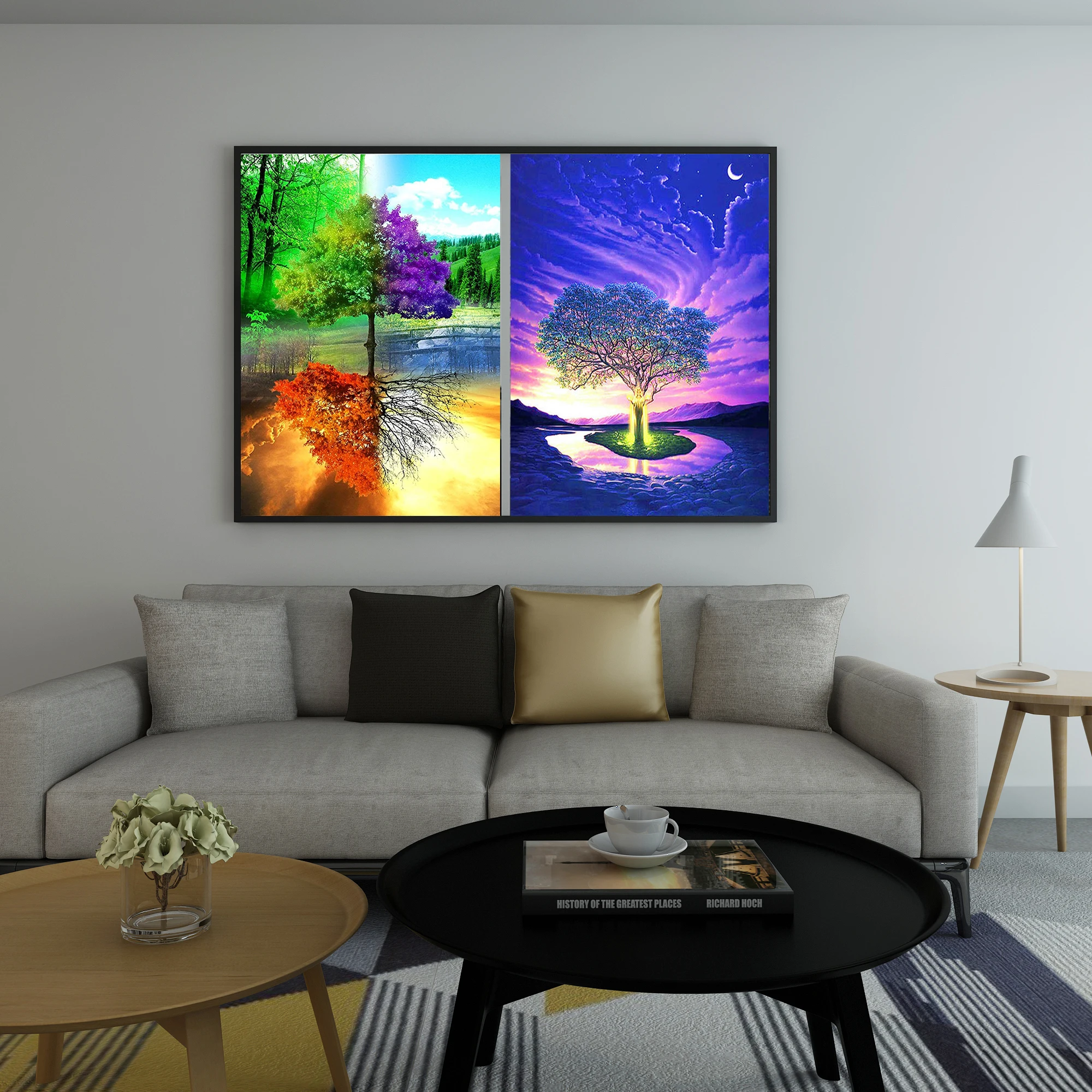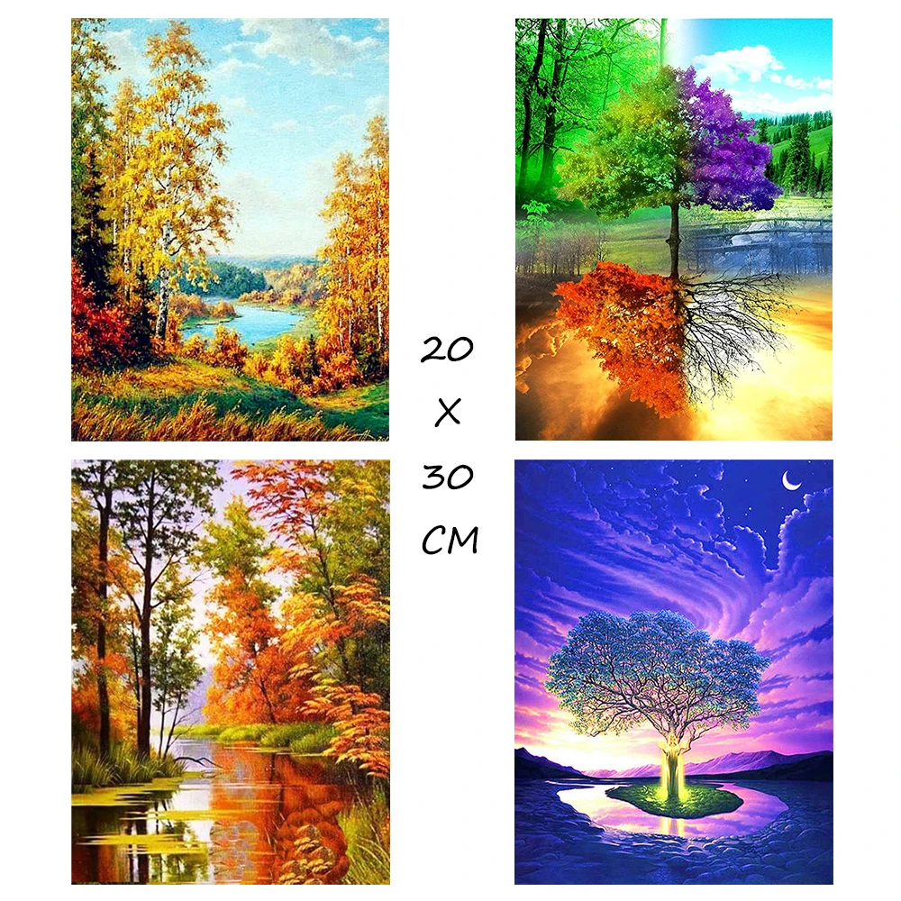Полная Алмазная дрель, круглая Ландшафтная мозаика, бриллиантовая Вышивка Дерево, алмазная живопись, стежок, алмазные Стразы