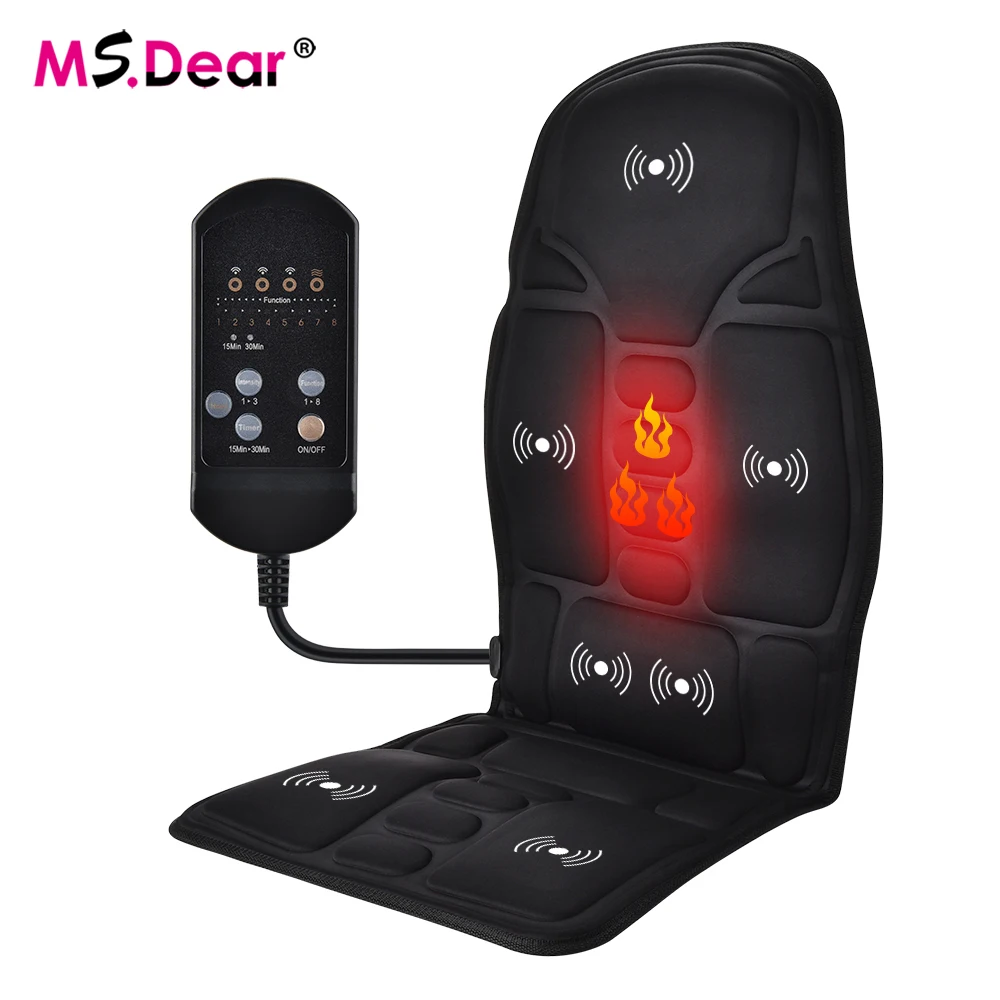 Электрический нагревательный вибрирующий массажер для спины портативный массажный стул, подставка для сидения для автомобиля, дома, офиса, для поясницы и шеи, матрас, облегчение боли