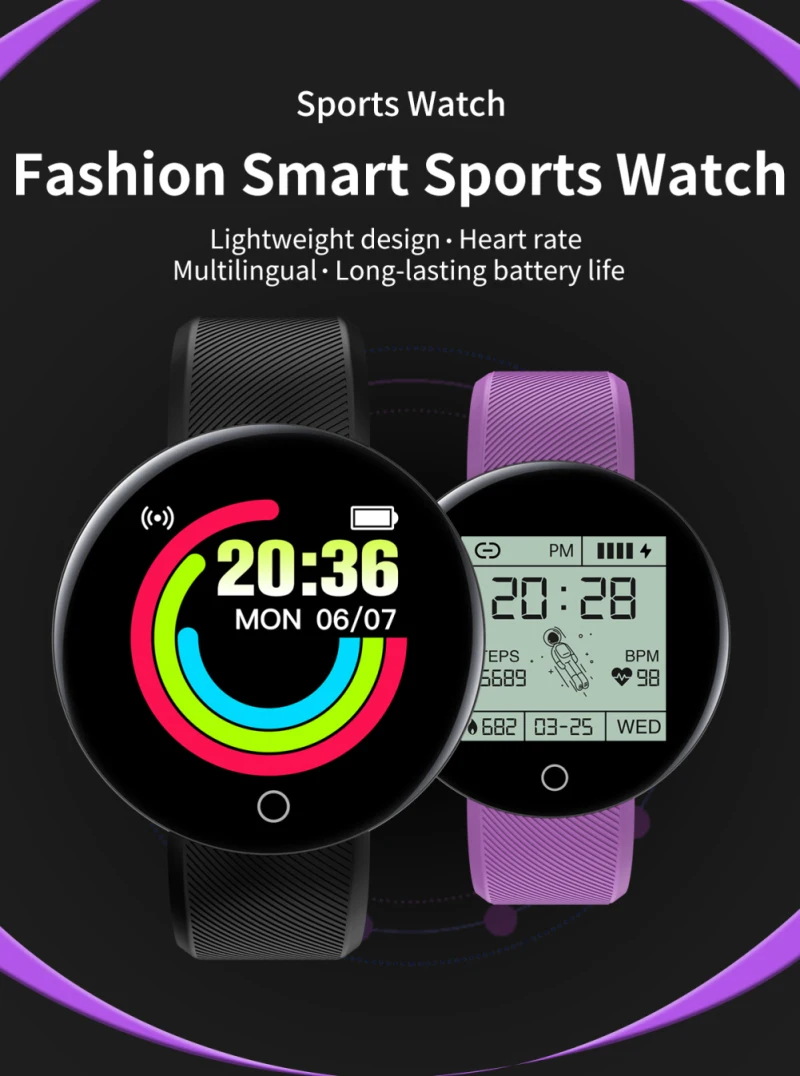 IP65 Водонепроницаемый для повседневной жизни, мульти-спортивный режим, подходит для занятий спортом на открытом воздухе. Автоматически записывает ежедневный шаг движения и данные о калориях.