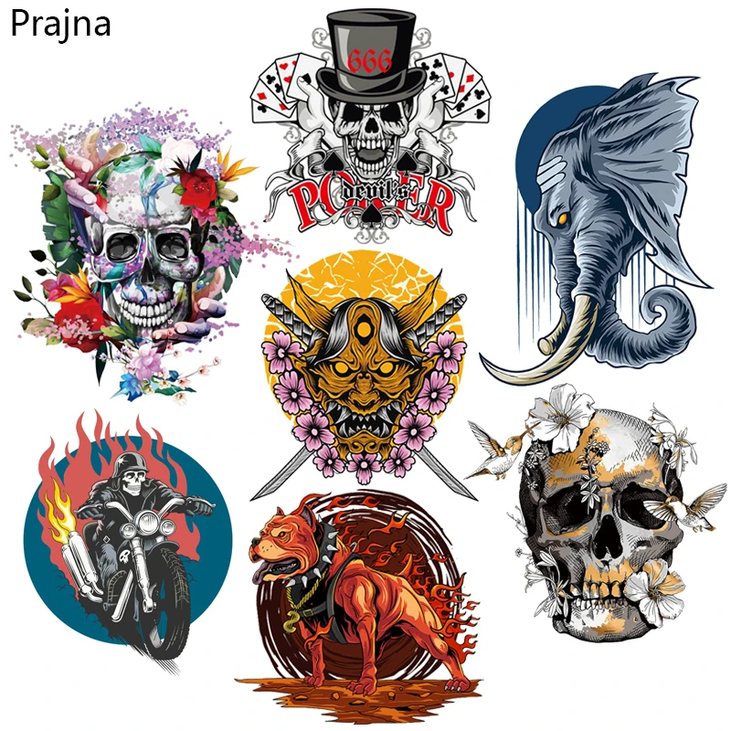 Патчи Prajna с черепом, термонаклейки, наклейки для одежды, куртки,...