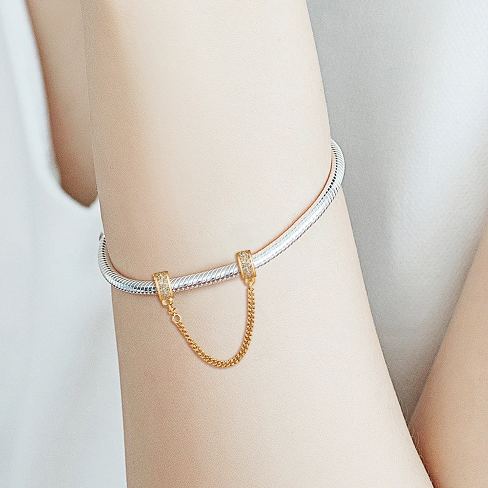 Женские бусины сделай сам для изготовления ювелирных изделий, зажим с прозрачной ПАВЕ, безопасная цепочка из серебра 925 пробы, Оригинальные европейские браслеты, бусины на цепочке