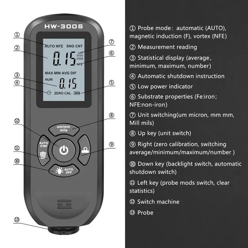 Цифровой измеритель толщины пленки с ЖК-дисплеем и подсветкой