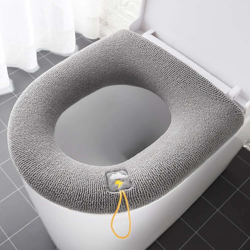 Однотонное универсальное сиденье для унитаза, 1 шт., утолщенное, всесезонное, вязаное, стирающаяся Бытовая крышка для унитаза с кольцом и ручкой