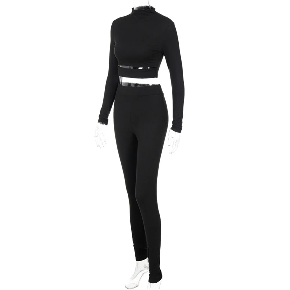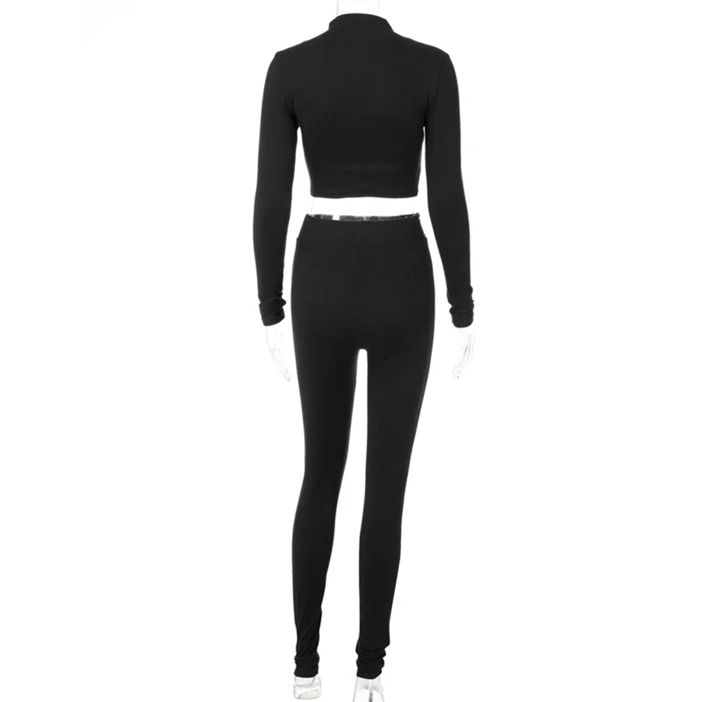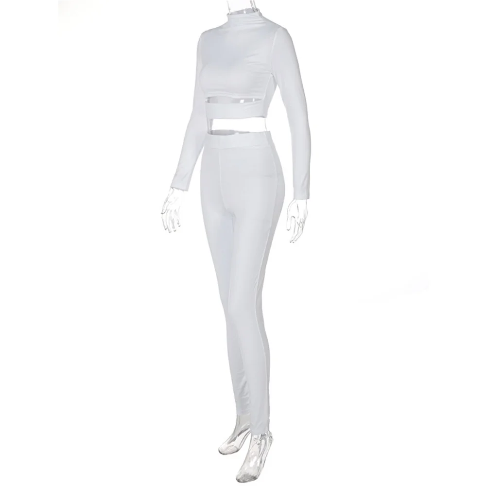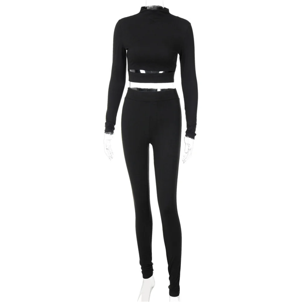 Женский спортивный костюм из сочного кокоса, однотонный спортивный укороченный топ с длинным рукавом и штаны для бега, повседневный костюм из двух предметов, осень 2021