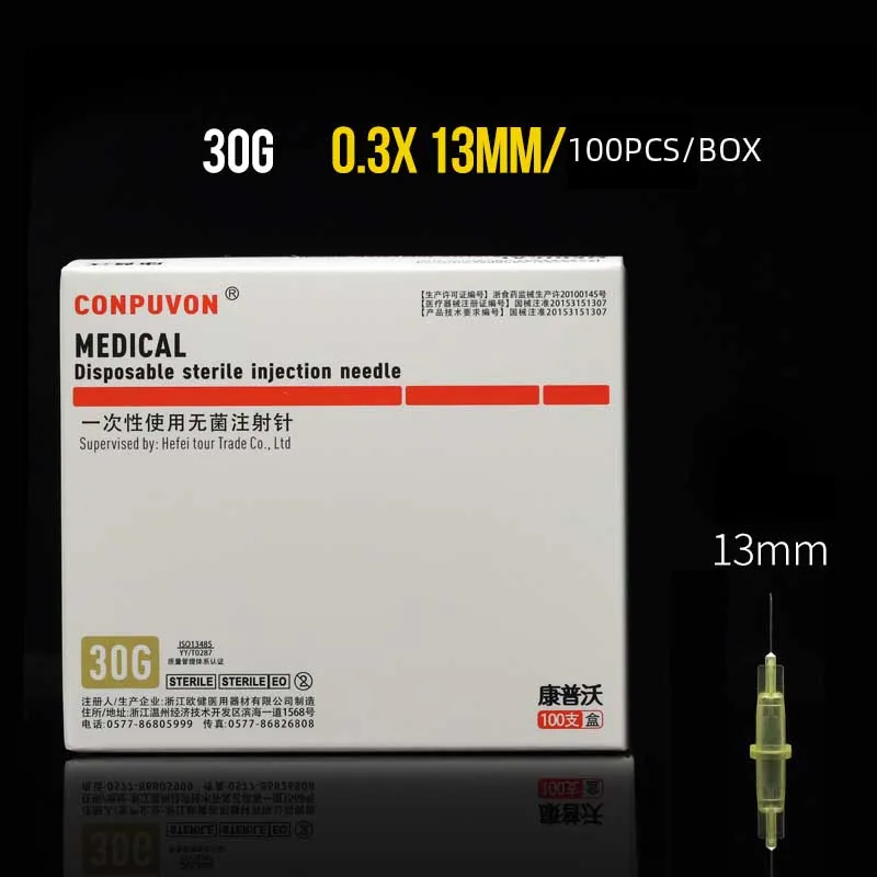 Безболезненная маленькая игла 13 мм 4 мм 25 мм Одноразовые 30 г медицинские микро-пластиковые инъекции косметические стерильные иглы хирургический инструмент 100 шт