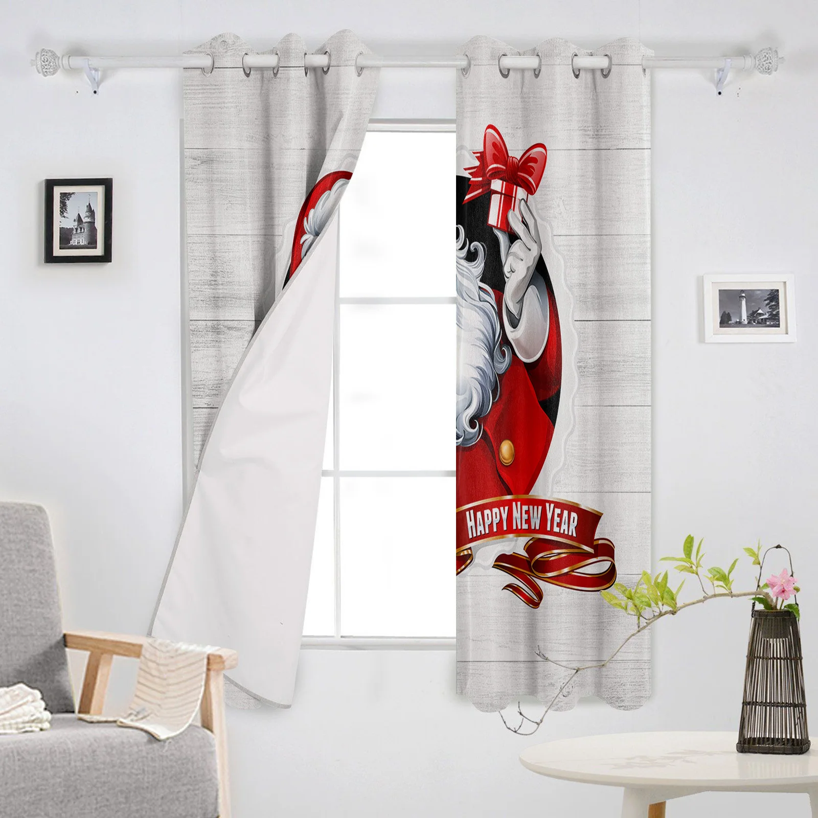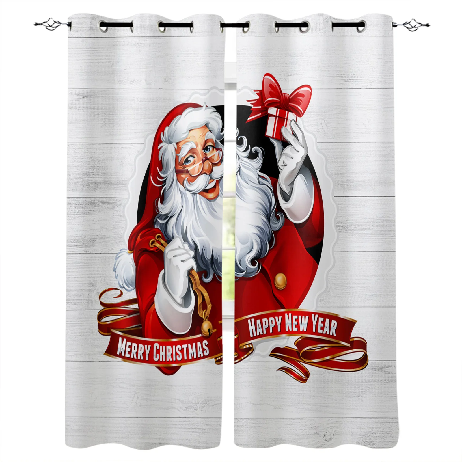 Рождественские шторы с Санта Клаусом и деревянной текстурой, новогодние занавески для спальни, рождественские занавески для гостиной, для спальни