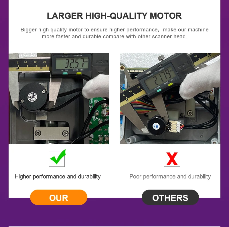 Высококачественный моторБолее качественный двигатель обеспечивает более высокую производительность, делает нашу машину более быстрой и долговечной по сравнению с другой головкой сканера.