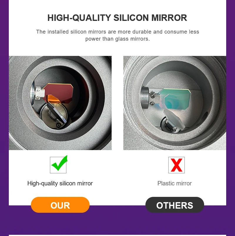 Мы выбираем знаменитые линзы с фокусным расстоянием “длина волны Сингапура”, чтобы обеспечить наилучшие материалы для покрытия линз, чтобы получить лучший результат гравировки. При использовании неизвестного бренда линзы не могут обеспечить лучшую гравировку