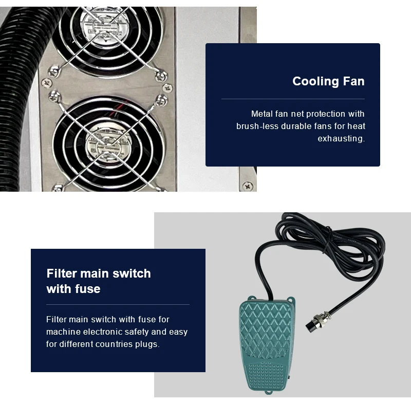 Прочная защитная труба для волоконного кабеляПрочный и прочный ножной переключательГлавный выключатель фильтра с предохранителем для электронной безопасности машины и легко для штепсельных вилок разных стран.Металлическая сетчатая защита вентилятора с бесщеточными долговечными вентиляторами для отвода тепла.