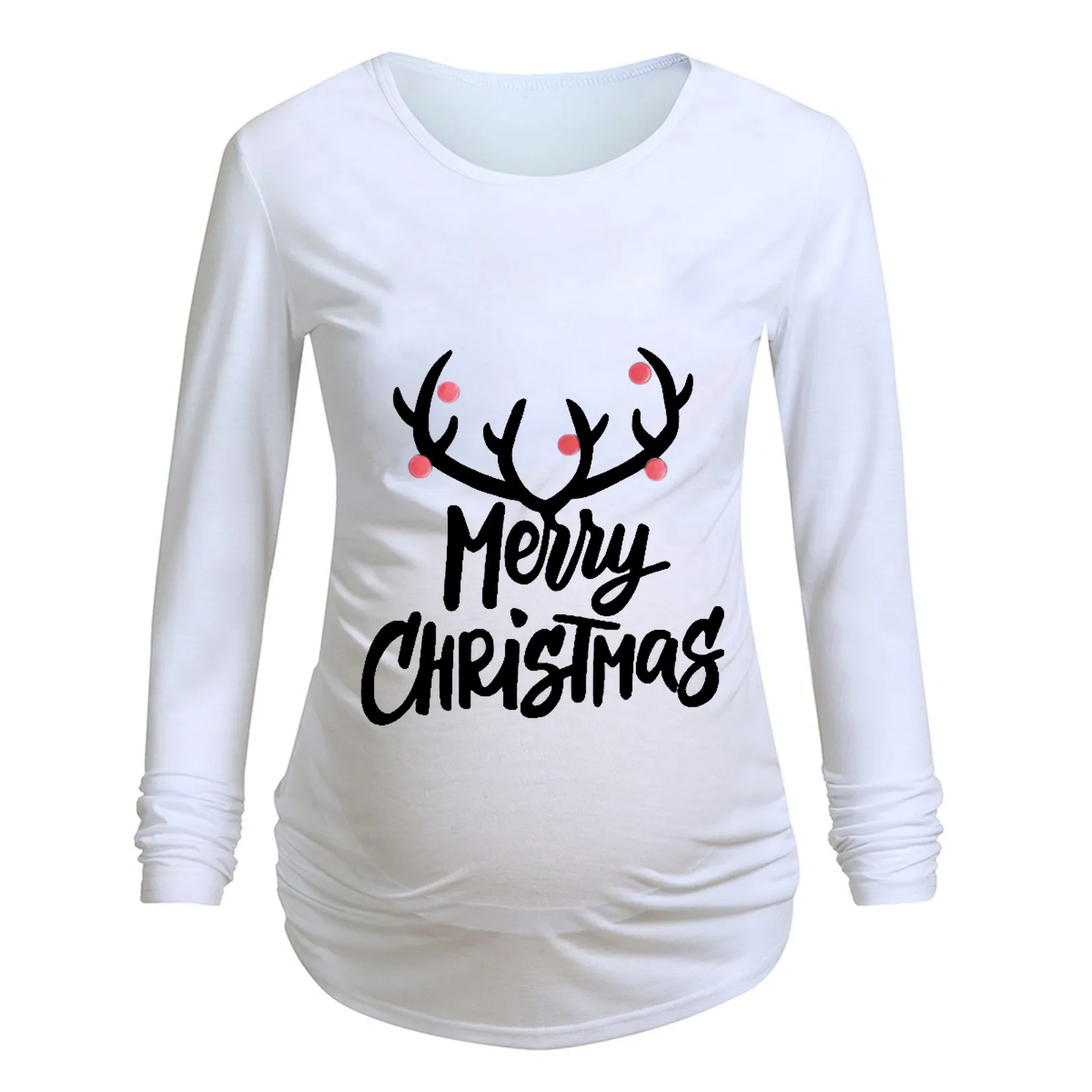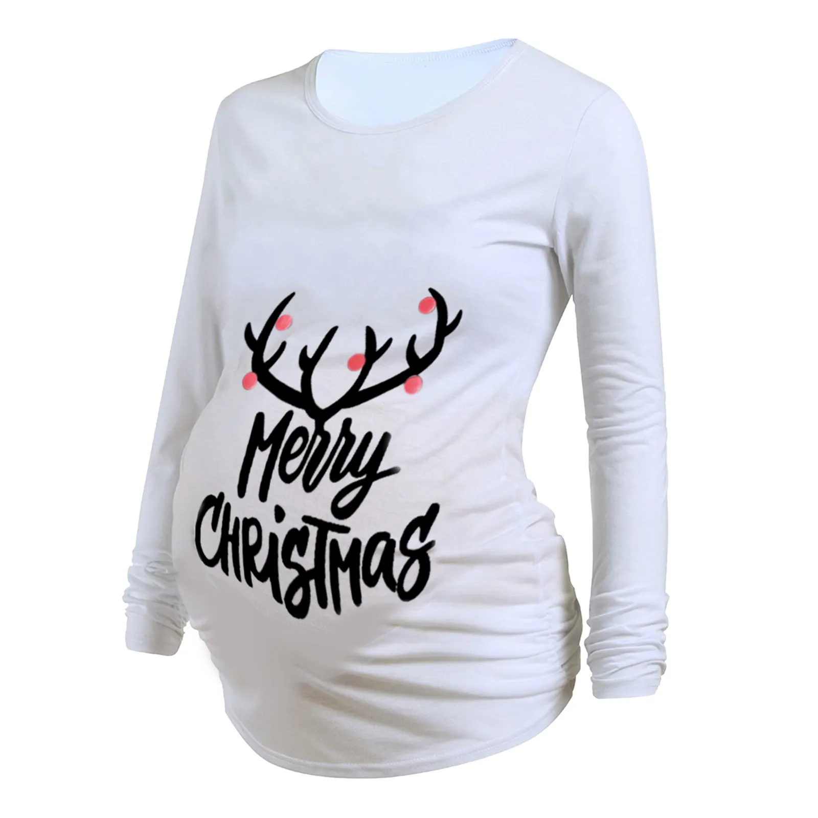 Рождественская зимняя одежда для беременных футболка с длинным рукавом с буквенным принтом Топы Блузка для беременных Футболка для беременных
