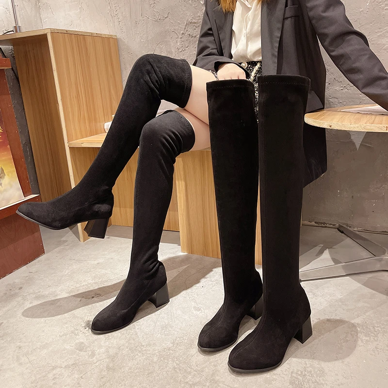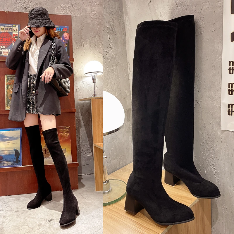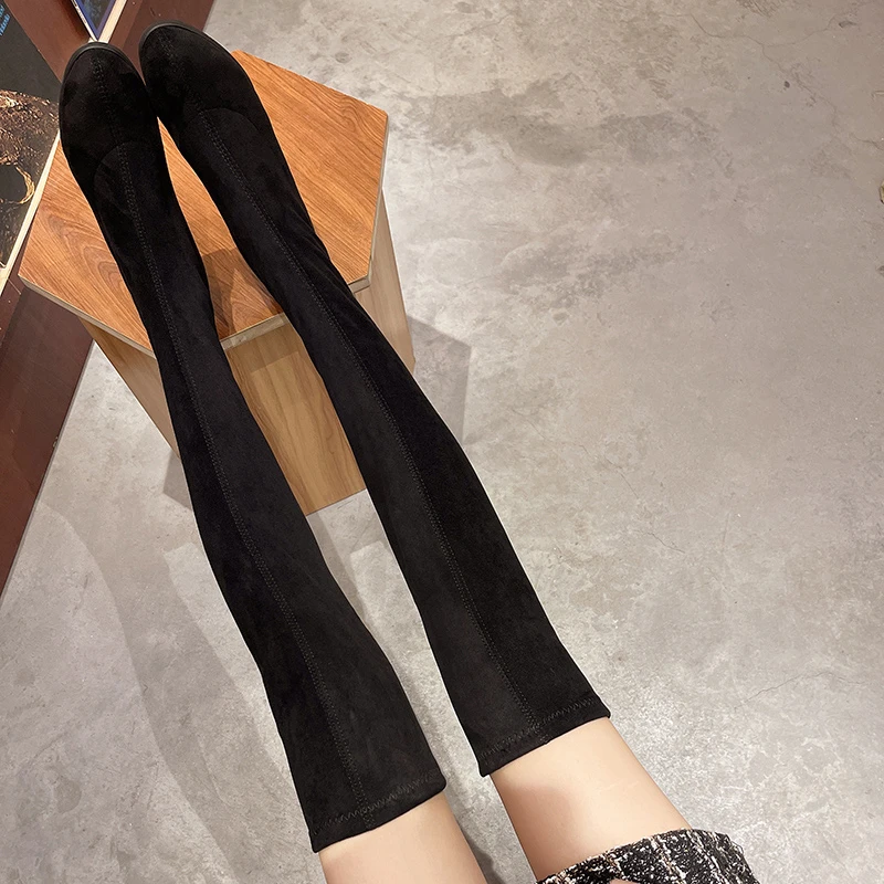 Новые облегающие сапоги из искусственной замши, привлекательные Сапоги выше колена, женские модные зимние сапоги до бедра, женская модная обувь Botas Mujer 2021