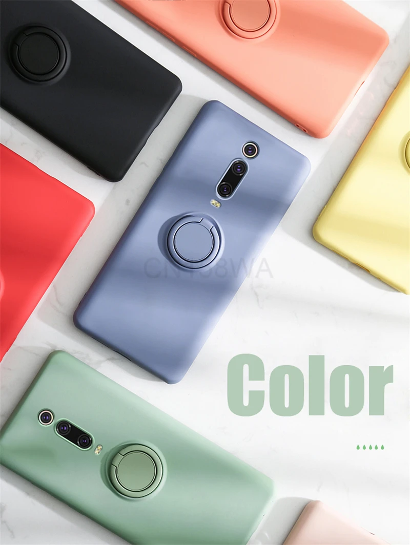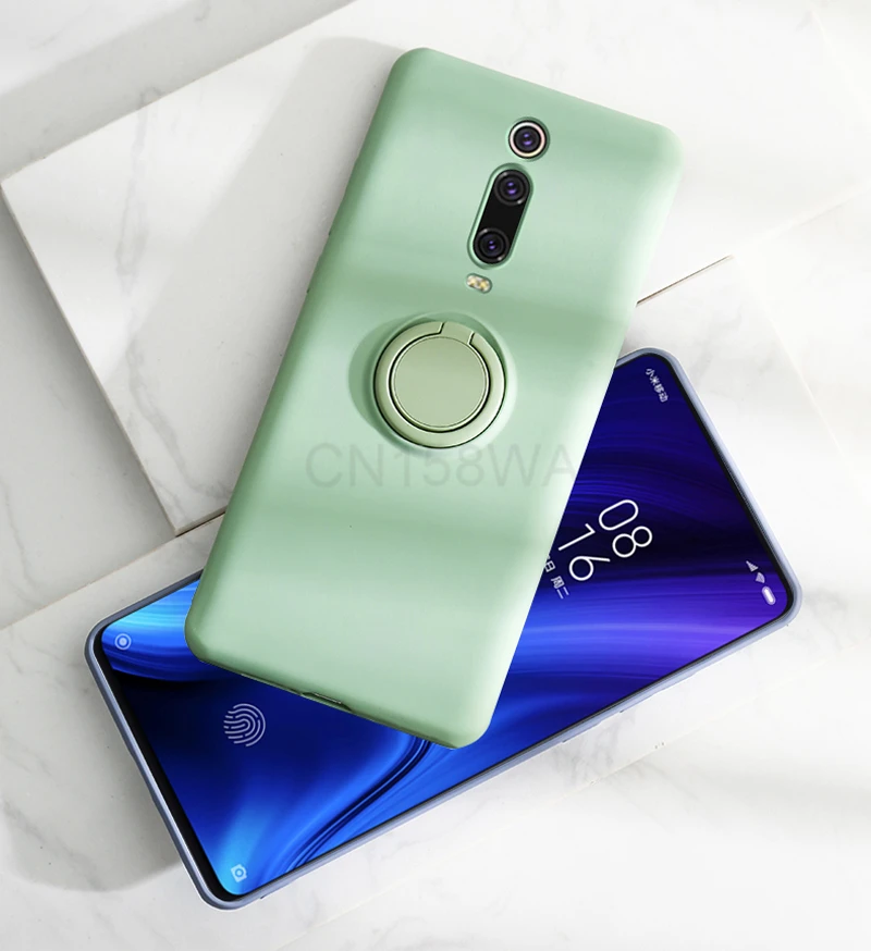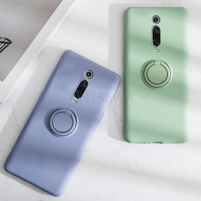Жидкий силиконовый чехол для Xiaomi Mi 10T 9T Pro Redmi Note 10 9 9S Pro Max POCO M3 F3 X3 NFC, чехол для телефона с кольцом-держателем и подставкой