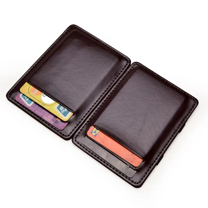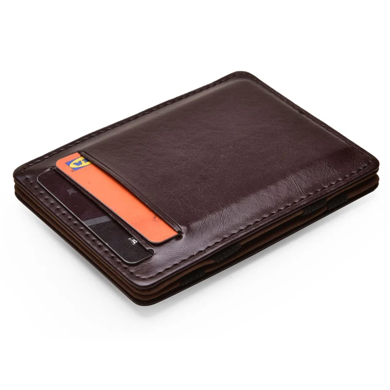 Новый тонкий вертикальный мужской волшебный кошелек, маленький кошелек из искусственной кожи с эластичной лентой, однотонный мини-кошелек с держателем для ID-карт, чехол для банковских и кредитных карт для мужчин