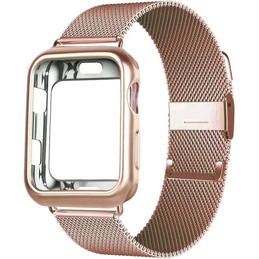 Чехол и ремешок для Apple Watch band 40 мм 44 мм 38 мм 42 мм, чехол с покрытием и металлическим ремешком, браслет из нержавеющей стали для iWatch 6 5 4 3 2 se
