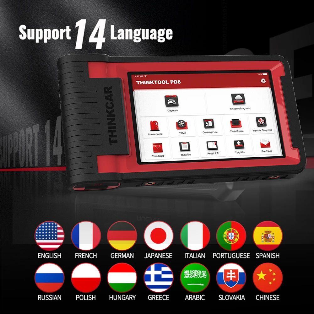 Thinkcar Thinktool PD8 имеет двунаправленный контроль, испытание на срабатывание и направляющие функции, поддерживает более продвинутые функции, включая сброс масла, Elec. Адаптация дроссельной заслонки, обслуживание IMMO, Кодирование инжектора, сброс пусковой площадки, сброс угла поворота руля, кровотечение ABS, сброс AFS, согласование батарей, обучение A/T, регенерация DPF, адаптация EGR, сброс TPMS, инициализация Sunroof, соответствие подвески, обучение передаче, сброс подушки безопасности, сброс ODO Meter, сброс AdBlue, сброс A/F, Кровотечение охлаждающей жидкости, изменение языка, сброс датчика NOx, калибровка сидений, сброс остановки/запуска, режим транспортировки, сброс шин, калибровка Windows.